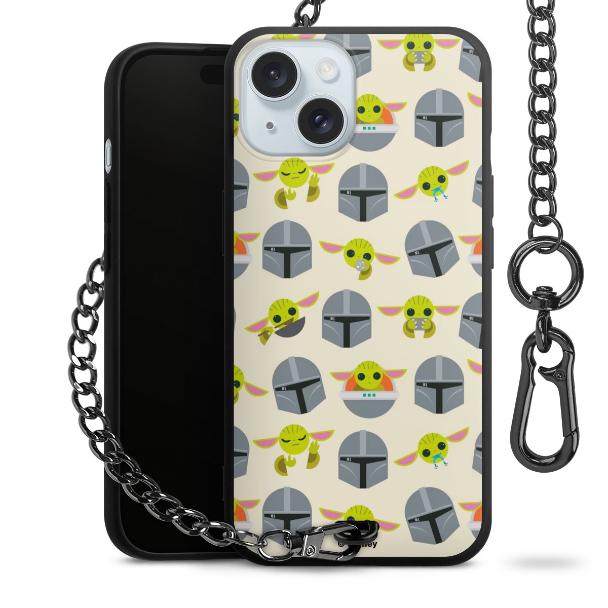Die mattschwarze Silikon-Handyhülle besteht aus robustem TPU (thermoplastisches Polyurethan). Sie ist flexibel und schützt Dein Smartphone vor Stößen und Kratzern. Die Kette sowie der Karabinerhaken sind aus Metall in Gunmetal-Optik gefertigt. Für dieses Produkt kommen ausschließlich TÜV-geprüfte Materialien zum Einsatz.