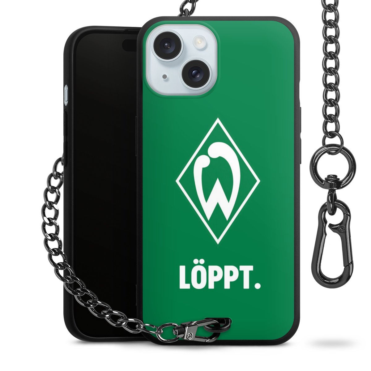 Die mattschwarze Silikon-Handyhülle besteht aus robustem TPU (thermoplastisches Polyurethan). Sie ist flexibel und schützt Dein Smartphone vor Stößen und Kratzern. Die Kette sowie der Karabinerhaken sind aus Metall in Gunmetal-Optik gefertigt. Für dieses Produkt kommen ausschließlich TÜV-geprüfte Materialien zum Einsatz.