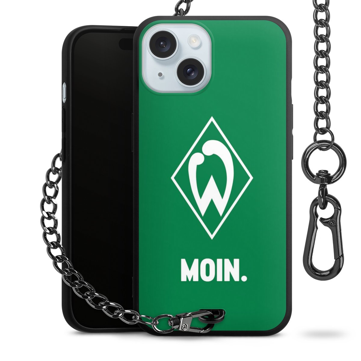 Die mattschwarze Silikon-Handyhülle besteht aus robustem TPU (thermoplastisches Polyurethan). Sie ist flexibel und schützt Dein Smartphone vor Stößen und Kratzern. Die Kette sowie der Karabinerhaken sind aus Metall in Gunmetal-Optik gefertigt. Für dieses Produkt kommen ausschließlich TÜV-geprüfte Materialien zum Einsatz.