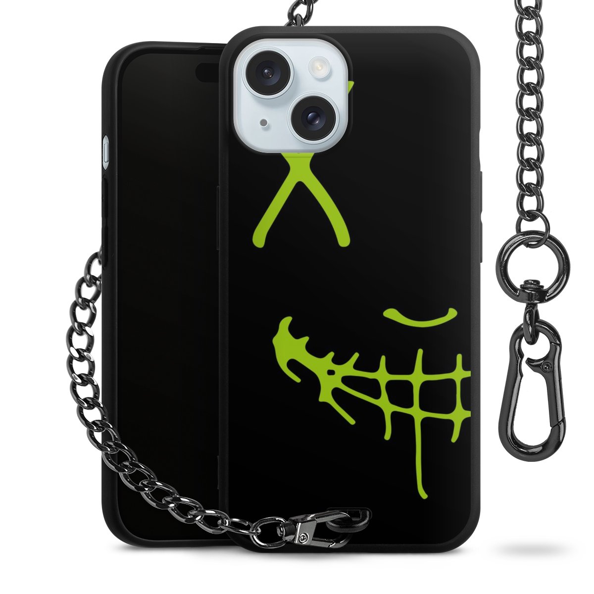Die mattschwarze Silikon-Handyhülle besteht aus robustem TPU (thermoplastisches Polyurethan). Sie ist flexibel und schützt Dein Smartphone vor Stößen und Kratzern. Die Kette sowie der Karabinerhaken sind aus Metall in Gunmetal-Optik gefertigt. Für dieses Produkt kommen ausschließlich TÜV-geprüfte Materialien zum Einsatz.
