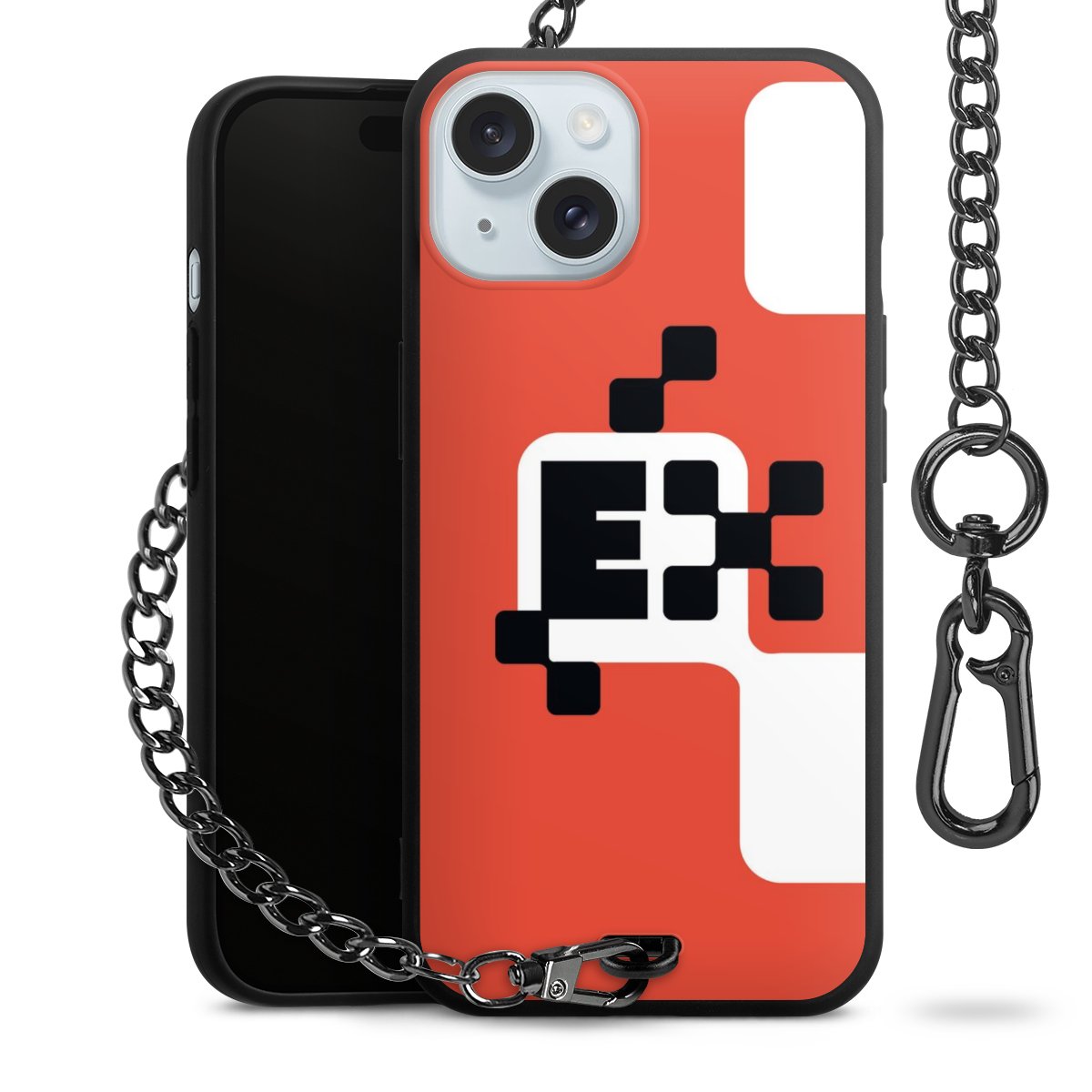 - Mattschwarze Handyhülle mit Metallkette