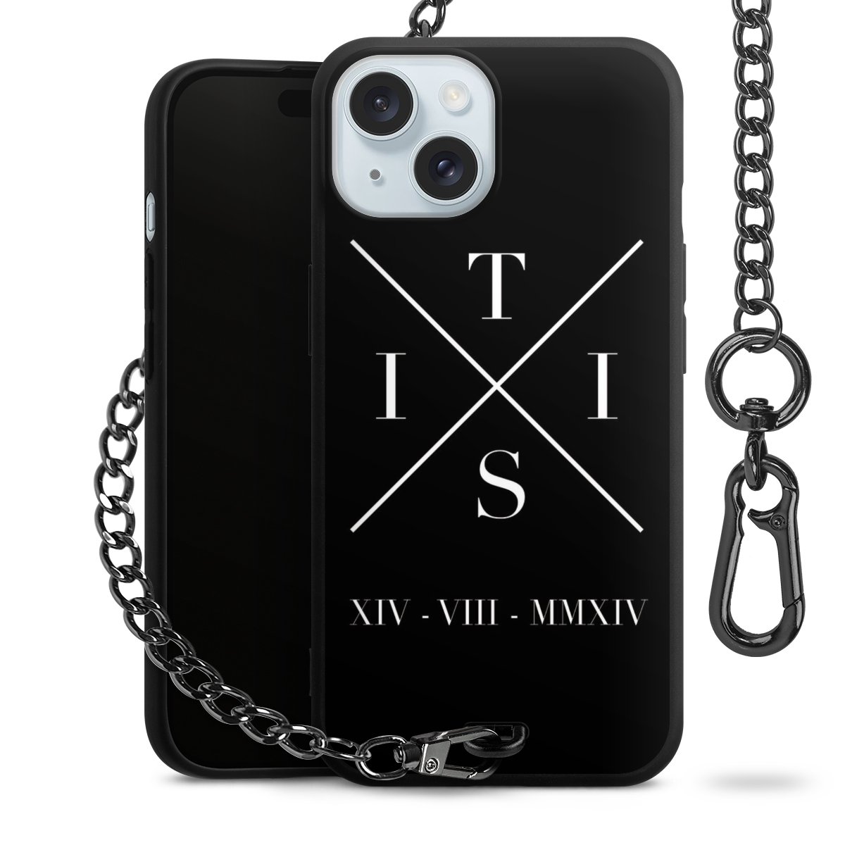 Die mattschwarze Silikon-Handyhülle besteht aus robustem TPU (thermoplastisches Polyurethan). Sie ist flexibel und schützt Dein Smartphone vor Stößen und Kratzern. Die Kette sowie der Karabinerhaken sind aus Metall in Gunmetal-Optik gefertigt. Für dieses Produkt kommen ausschließlich TÜV-geprüfte Materialien zum Einsatz.