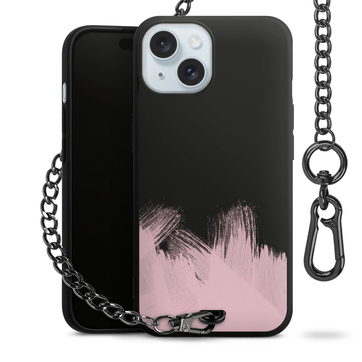 • Mattschwarze Handyhülle mit Metallkette