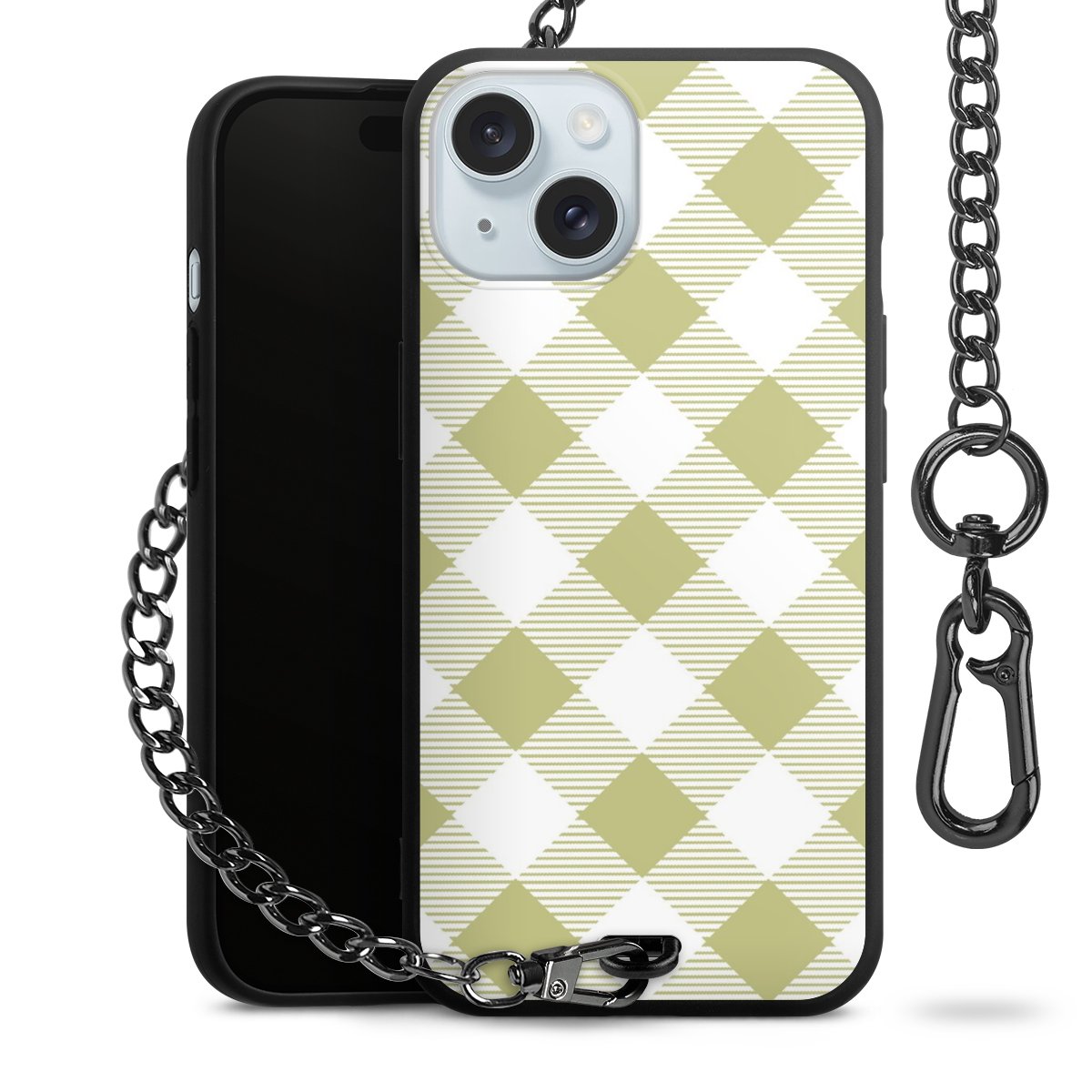 Die mattschwarze Silikon-Handyhülle besteht aus robustem TPU (thermoplastisches Polyurethan). Sie ist flexibel und schützt Dein Smartphone vor Stößen und Kratzern. Die Kette sowie der Karabinerhaken sind aus Metall in Gunmetal-Optik gefertigt. Für dieses Produkt kommen ausschließlich TÜV-geprüfte Materialien zum Einsatz.