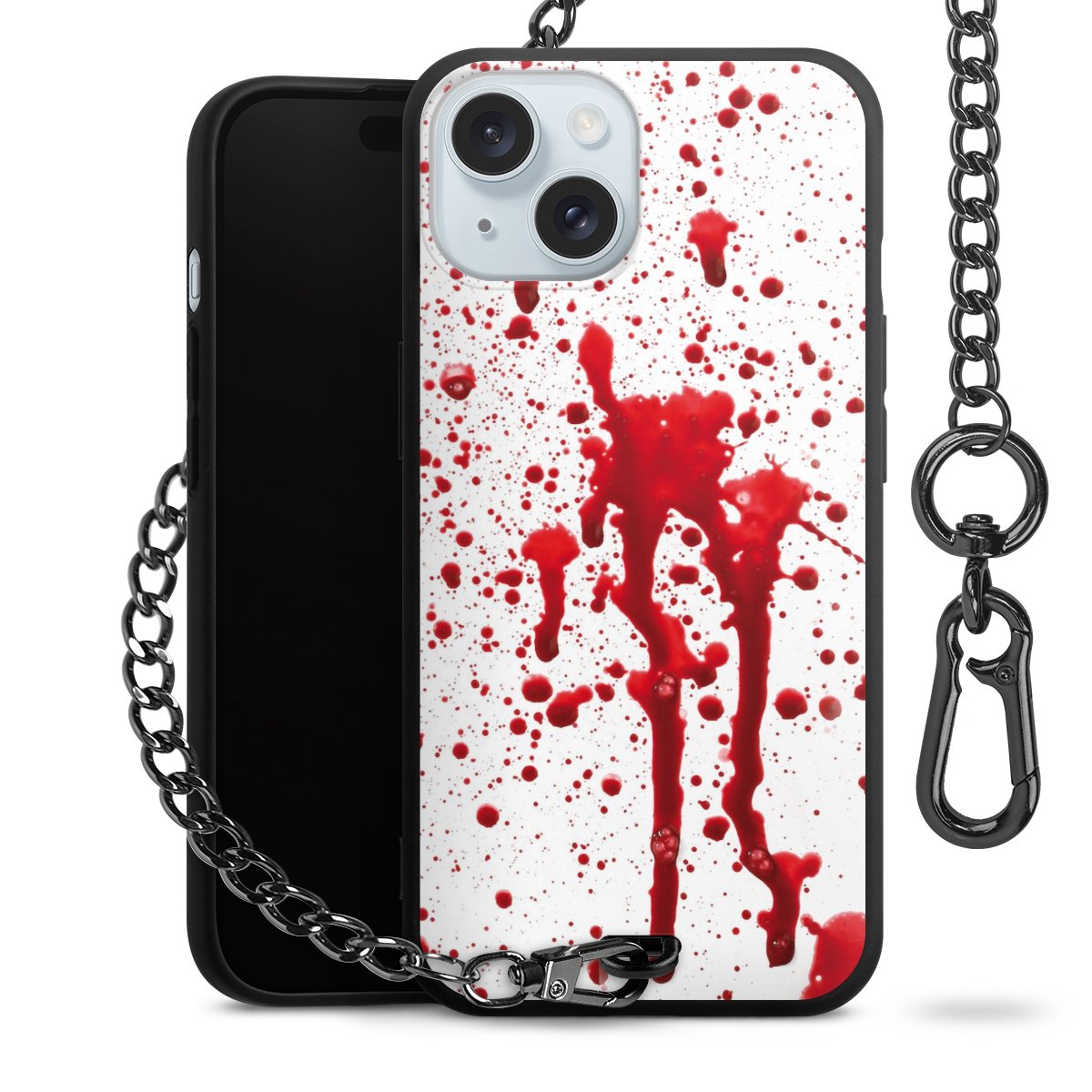 - Mattschwarze Handyhülle mit Metallkette