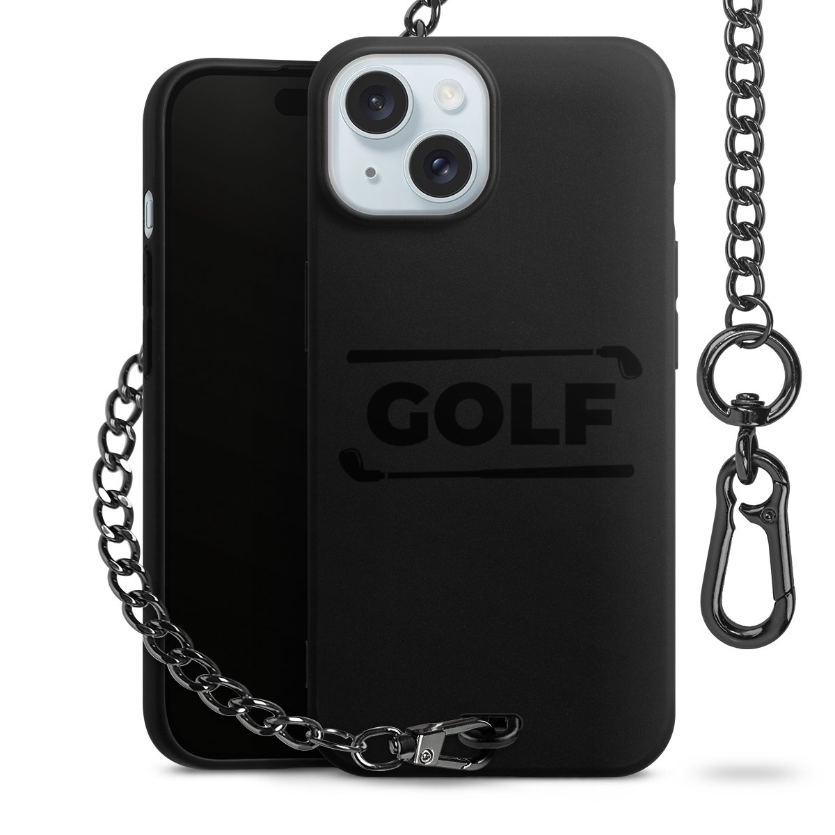 • Mattschwarze Handyhülle mit Metallkette