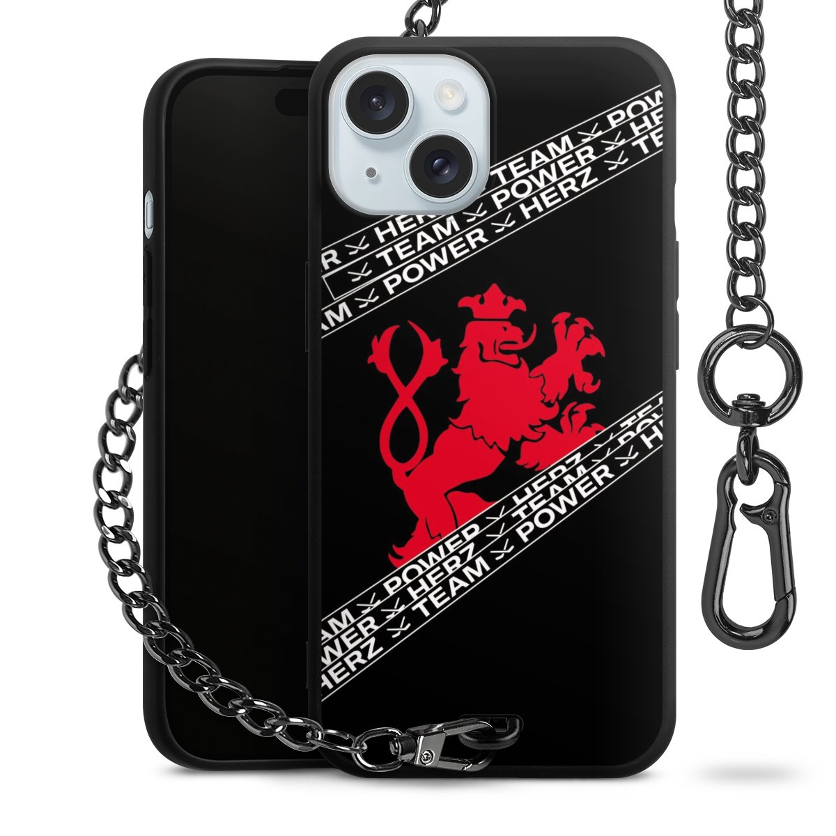 Die mattschwarze Silikon-Handyhülle besteht aus robustem TPU (thermoplastisches Polyurethan). Sie ist flexibel und schützt Dein Smartphone vor Stößen und Kratzern. Die Kette sowie der Karabinerhaken sind aus Metall in Gunmetal-Optik gefertigt. Für dieses Produkt kommen ausschließlich TÜV-geprüfte Materialien zum Einsatz.