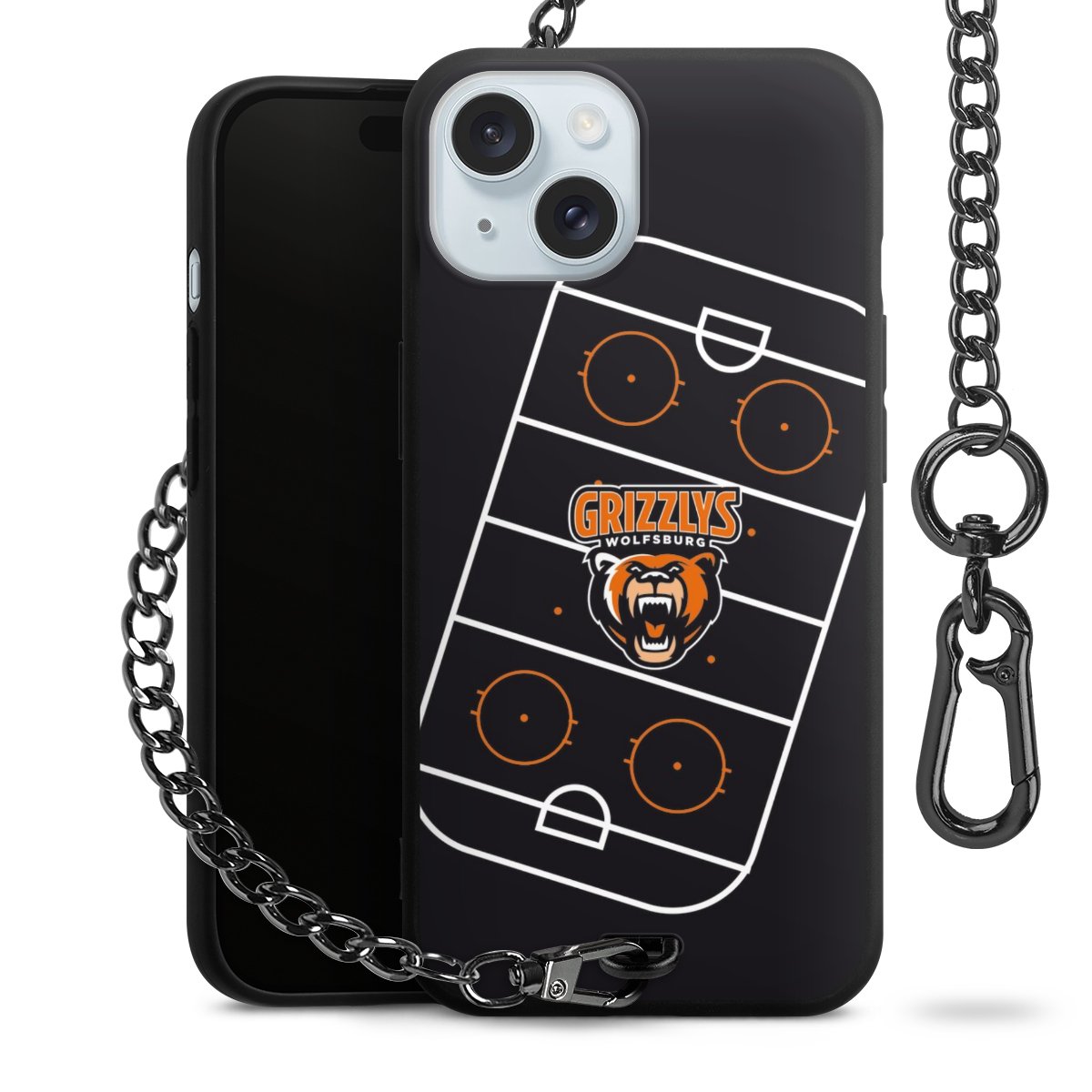 - Mattschwarze Handyhülle mit Metallkette