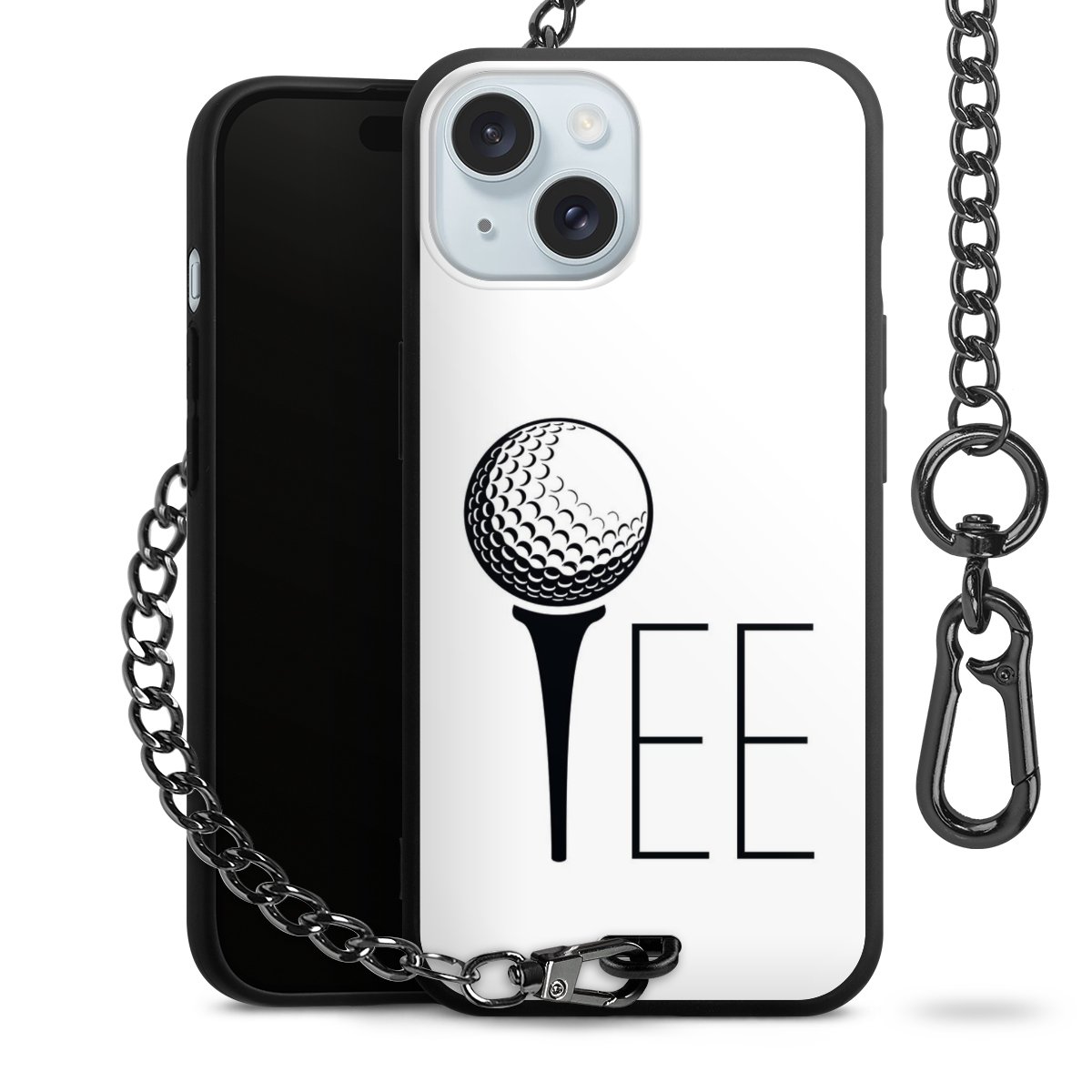• Mattschwarze Handyhülle mit Metallkette
