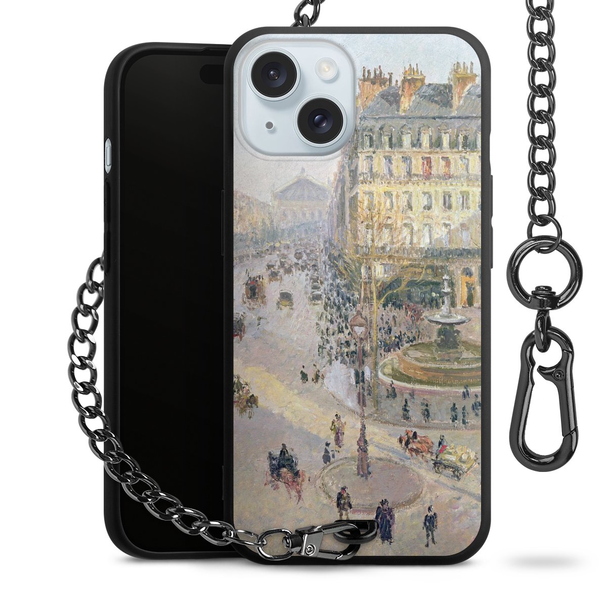 • Mattschwarze Handyhülle mit Metallkette