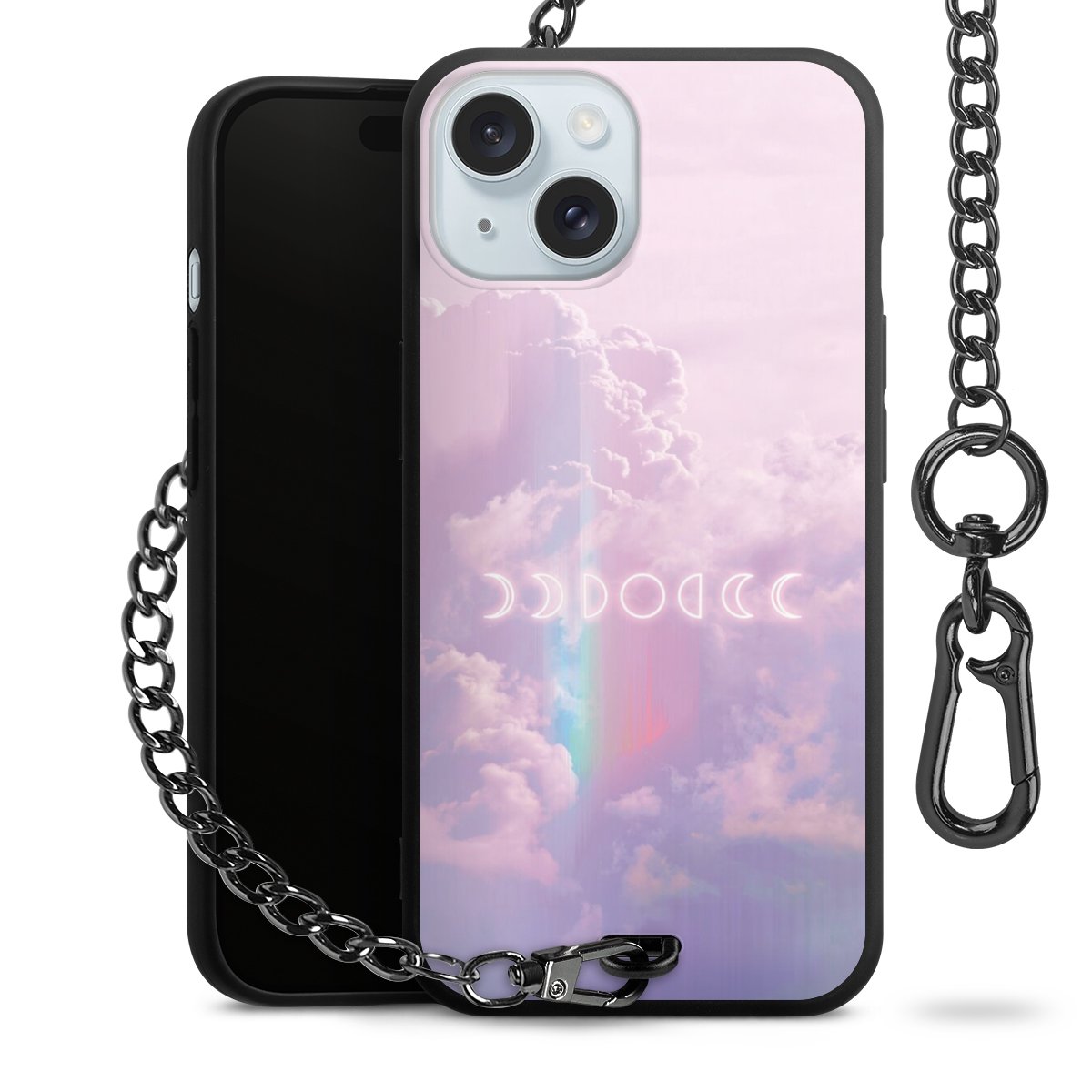 • Mattschwarze Handyhülle mit Metallkette