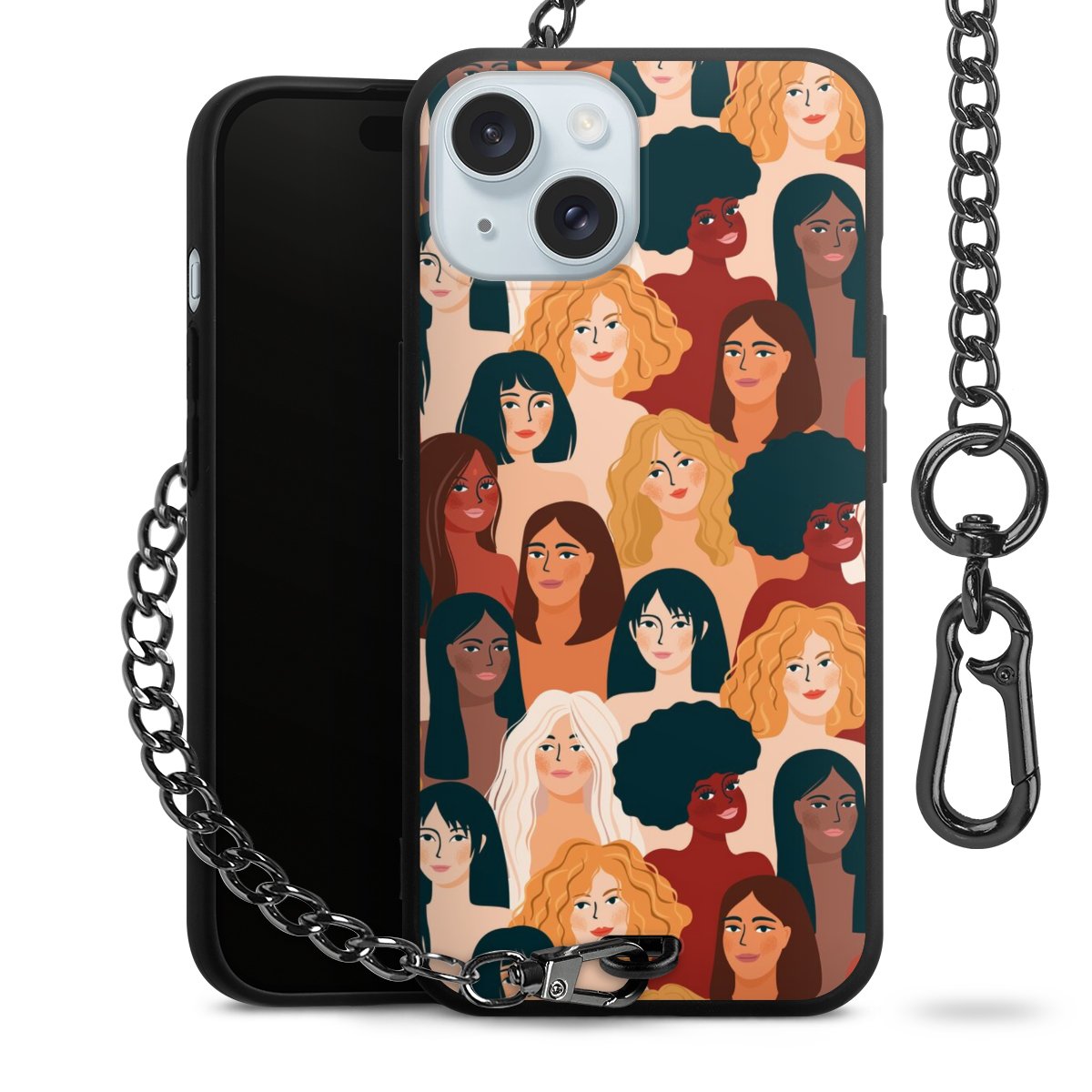 • Mattschwarze Handyhülle mit Metallkette