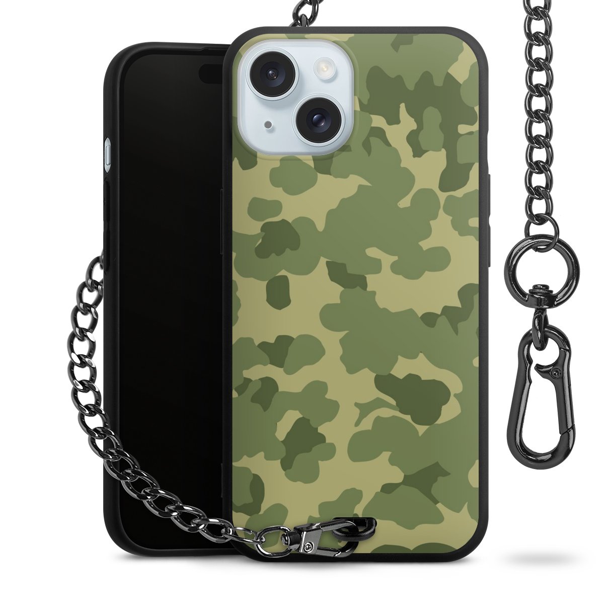 Die mattschwarze Silikon-Handyhülle besteht aus robustem TPU (thermoplastisches Polyurethan). Sie ist flexibel und schützt Dein Smartphone vor Stößen und Kratzern. Die Kette sowie der Karabinerhaken sind aus Metall in Gunmetal-Optik gefertigt. Für dieses Produkt kommen ausschließlich TÜV-geprüfte Materialien zum Einsatz.