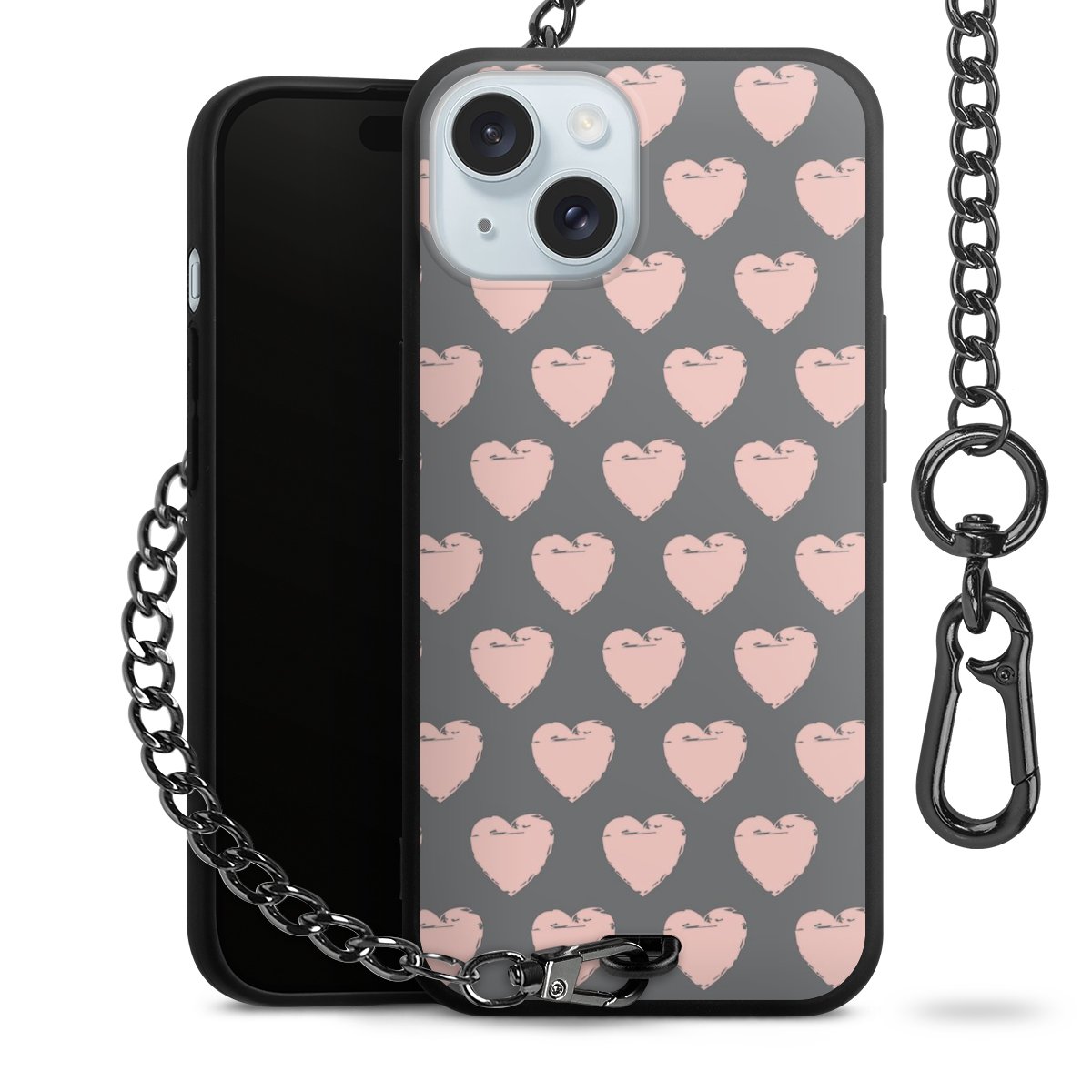 • Mattschwarze Handyhülle mit Metallkette