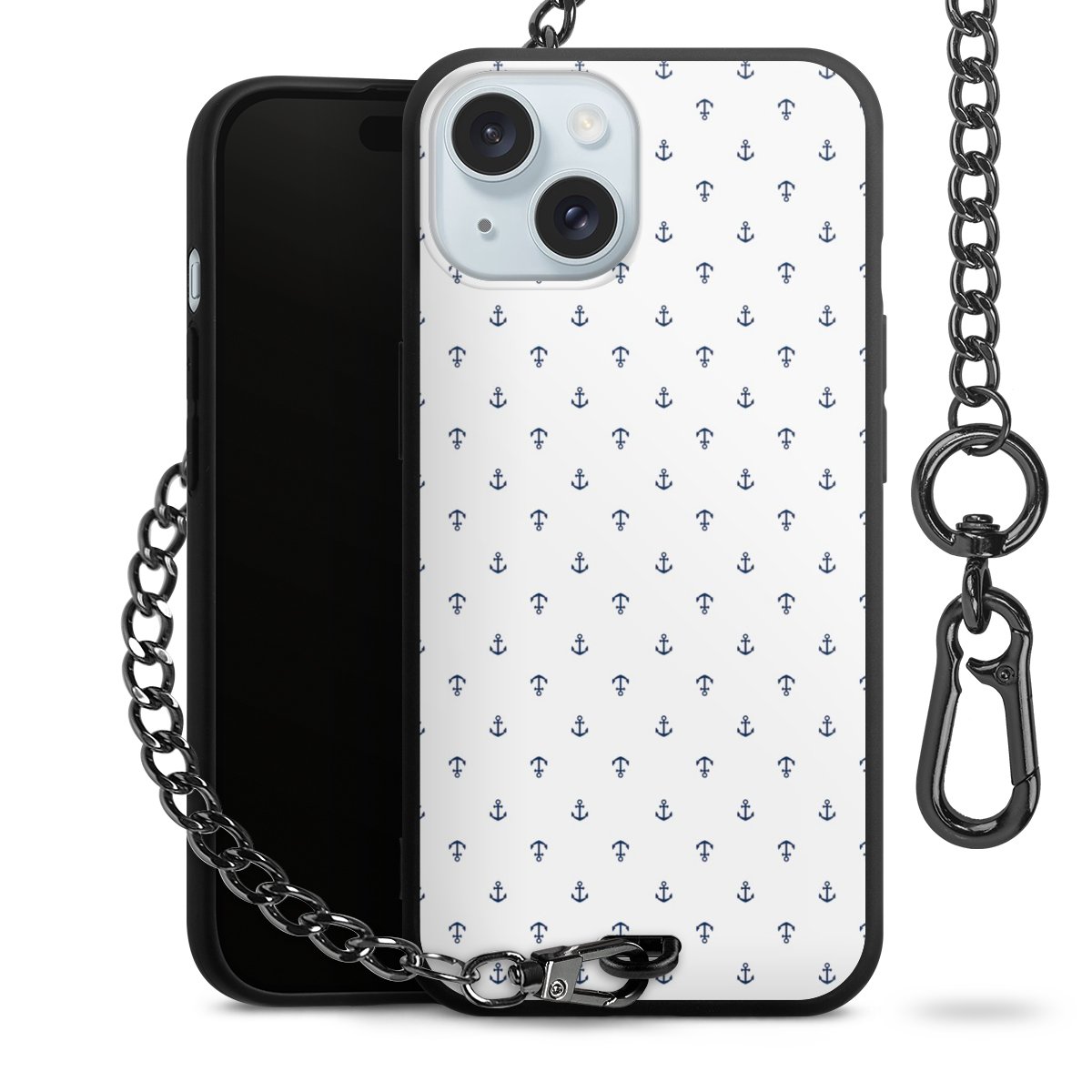 - Mattschwarze Handyhülle mit Metallkette
