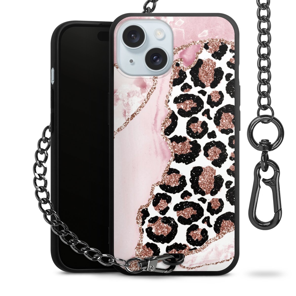 • Mattschwarze Handyhülle mit Metallkette