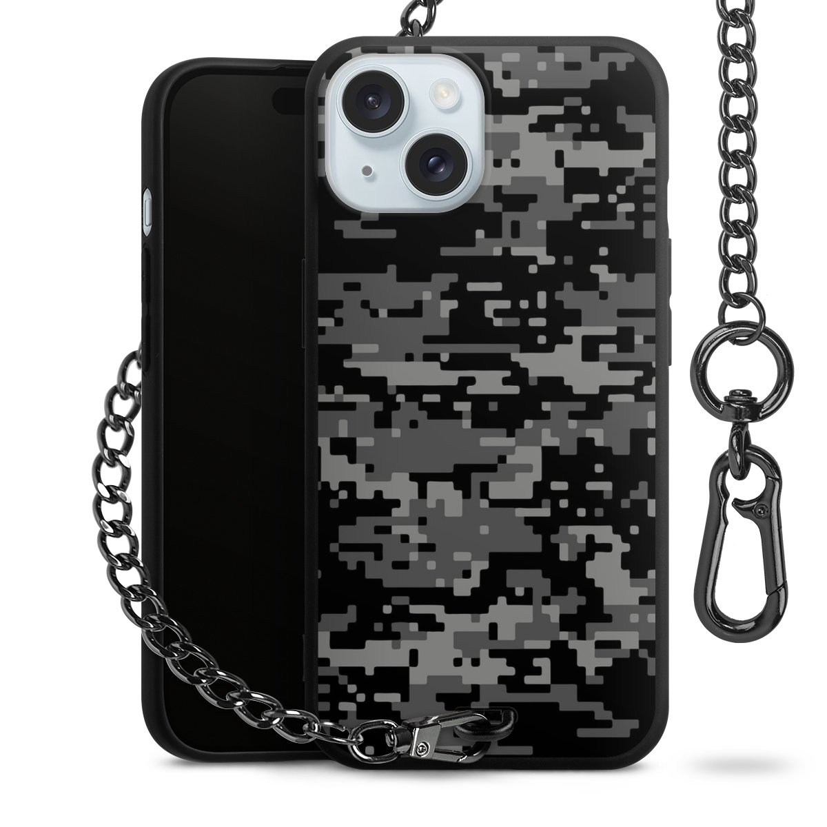 - Mattschwarze Handyhülle mit Metallkette
