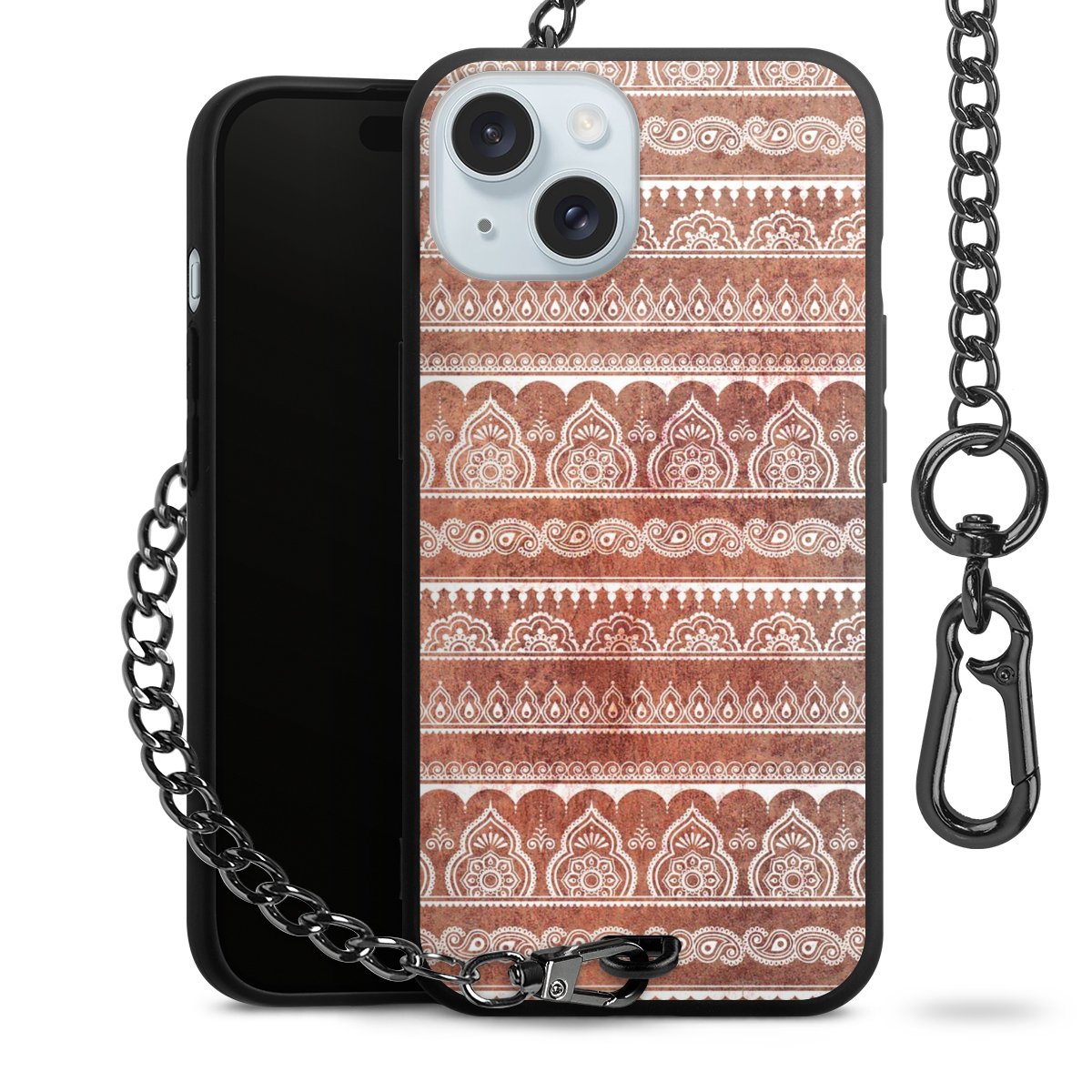 • Mattschwarze Handyhülle mit Metallkette