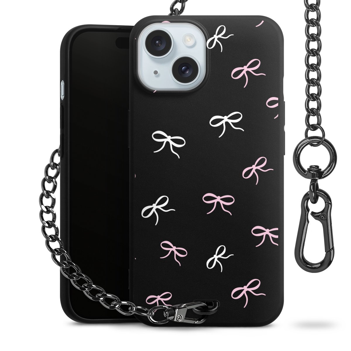 - Mattschwarze Handyhülle mit Metallkette