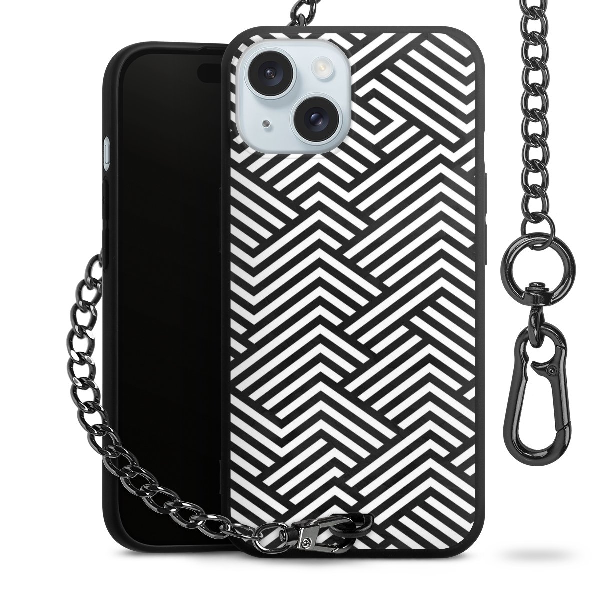 • Mattschwarze Handyhülle mit Metallkette