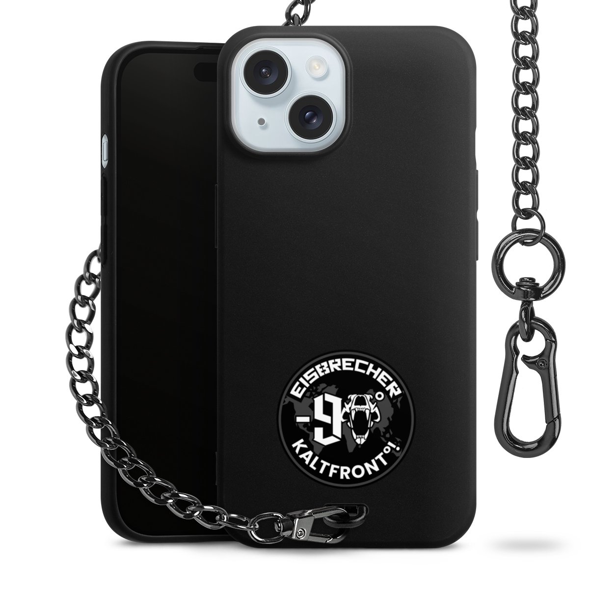 • Mattschwarze Handyhülle mit Metallkette