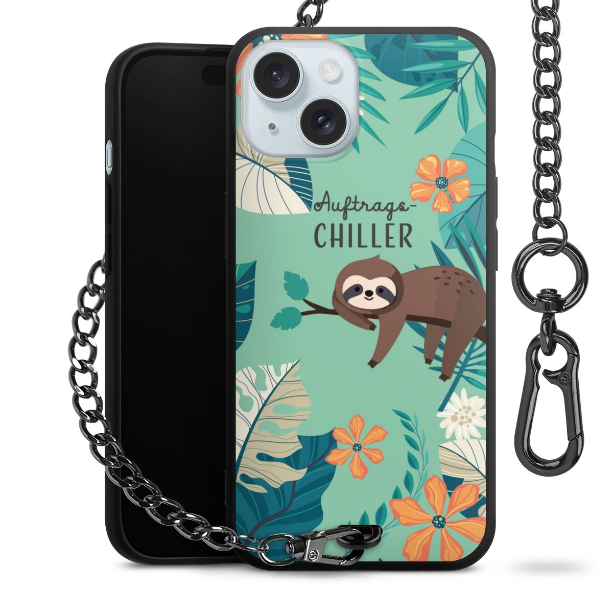Die mattschwarze Silikon-Handyhülle besteht aus robustem TPU (thermoplastisches Polyurethan). Sie ist flexibel und schützt Dein Smartphone vor Stößen und Kratzern. Die Kette sowie der Karabinerhaken sind aus Metall in Gunmetal-Optik gefertigt. Für dieses Produkt kommen ausschließlich TÜV-geprüfte Materialien zum Einsatz.