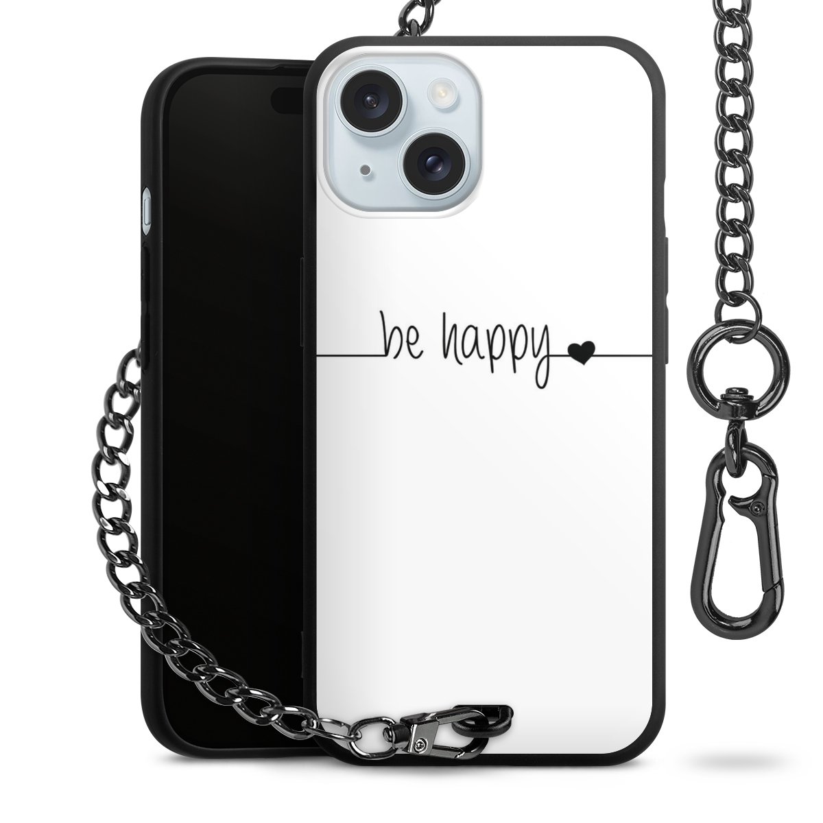 Die mattschwarze Silikon-Handyhülle besteht aus robustem TPU (thermoplastisches Polyurethan). Sie ist flexibel und schützt Dein Smartphone vor Stößen und Kratzern. Die Kette sowie der Karabinerhaken sind aus Metall in Gunmetal-Optik gefertigt. Für dieses Produkt kommen ausschließlich TÜV-geprüfte Materialien zum Einsatz.