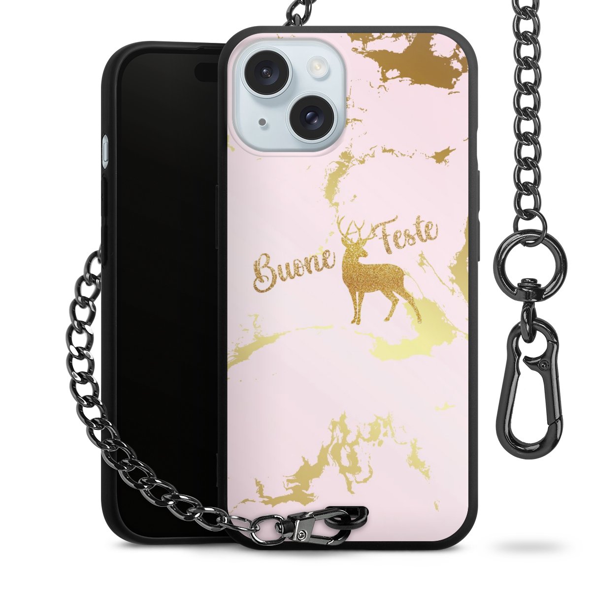 - Mattschwarze Handyhülle mit Metallkette