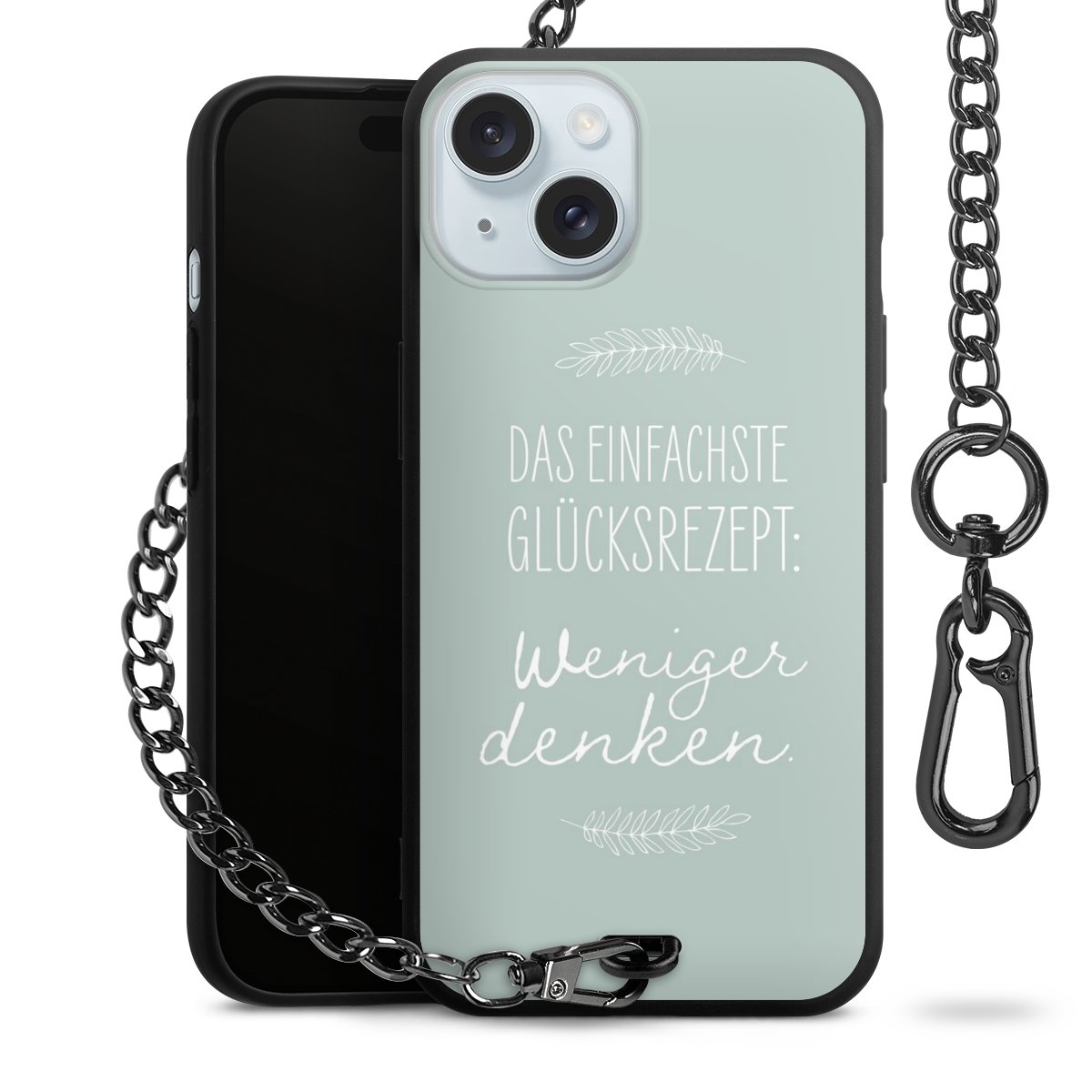 Die mattschwarze Silikon-Handyhülle besteht aus robustem TPU (thermoplastisches Polyurethan). Sie ist flexibel und schützt Dein Smartphone vor Stößen und Kratzern. Die Kette sowie der Karabinerhaken sind aus Metall in Gunmetal-Optik gefertigt. Für dieses Produkt kommen ausschließlich TÜV-geprüfte Materialien zum Einsatz.