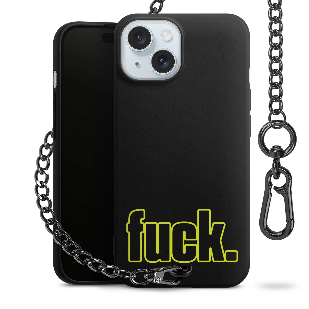 Die mattschwarze Silikon-Handyhülle besteht aus robustem TPU (thermoplastisches Polyurethan). Sie ist flexibel und schützt Dein Smartphone vor Stößen und Kratzern. Die Kette sowie der Karabinerhaken sind aus Metall in Gunmetal-Optik gefertigt. Für dieses Produkt kommen ausschließlich TÜV-geprüfte Materialien zum Einsatz.