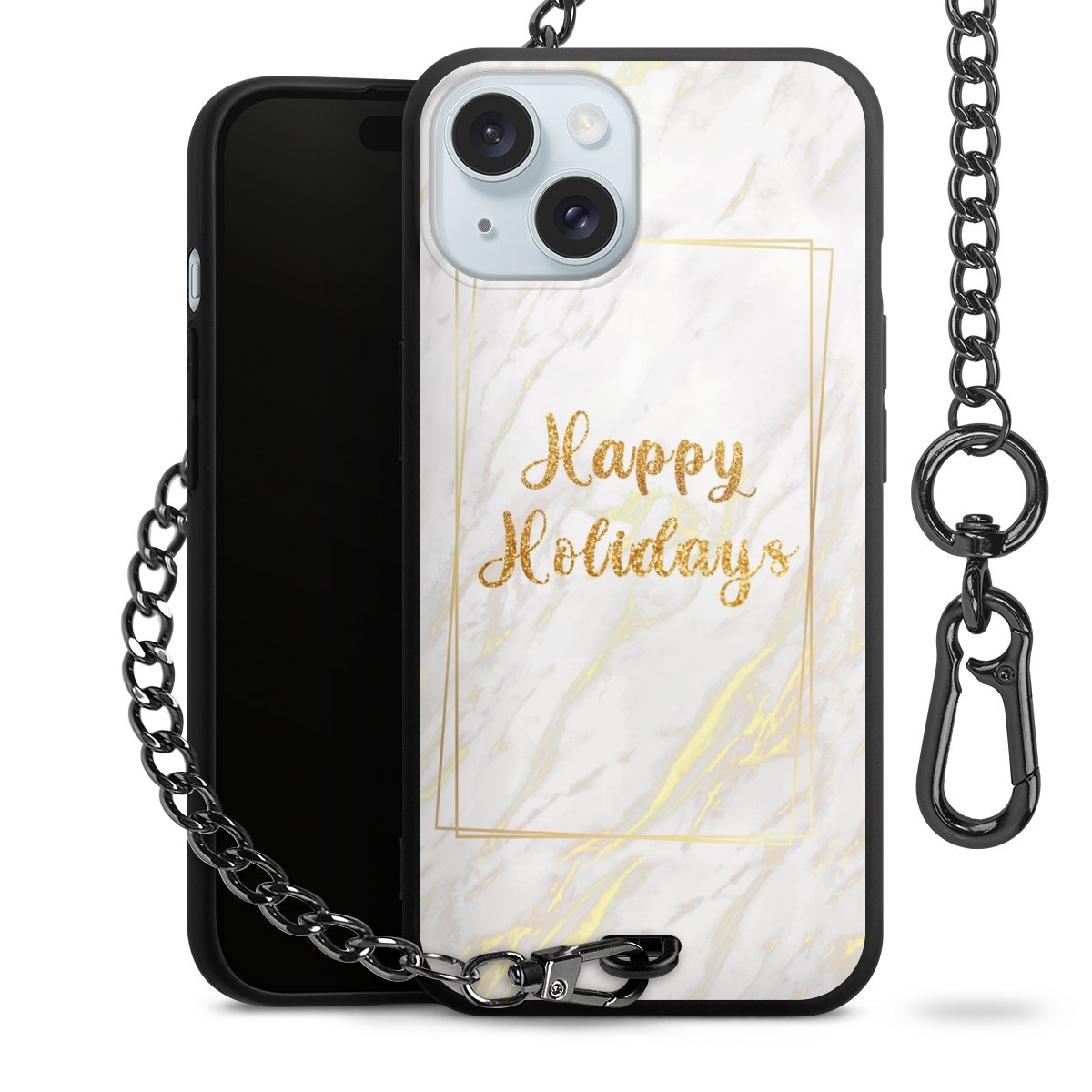 - Mattschwarze Handyhülle mit Metallkette