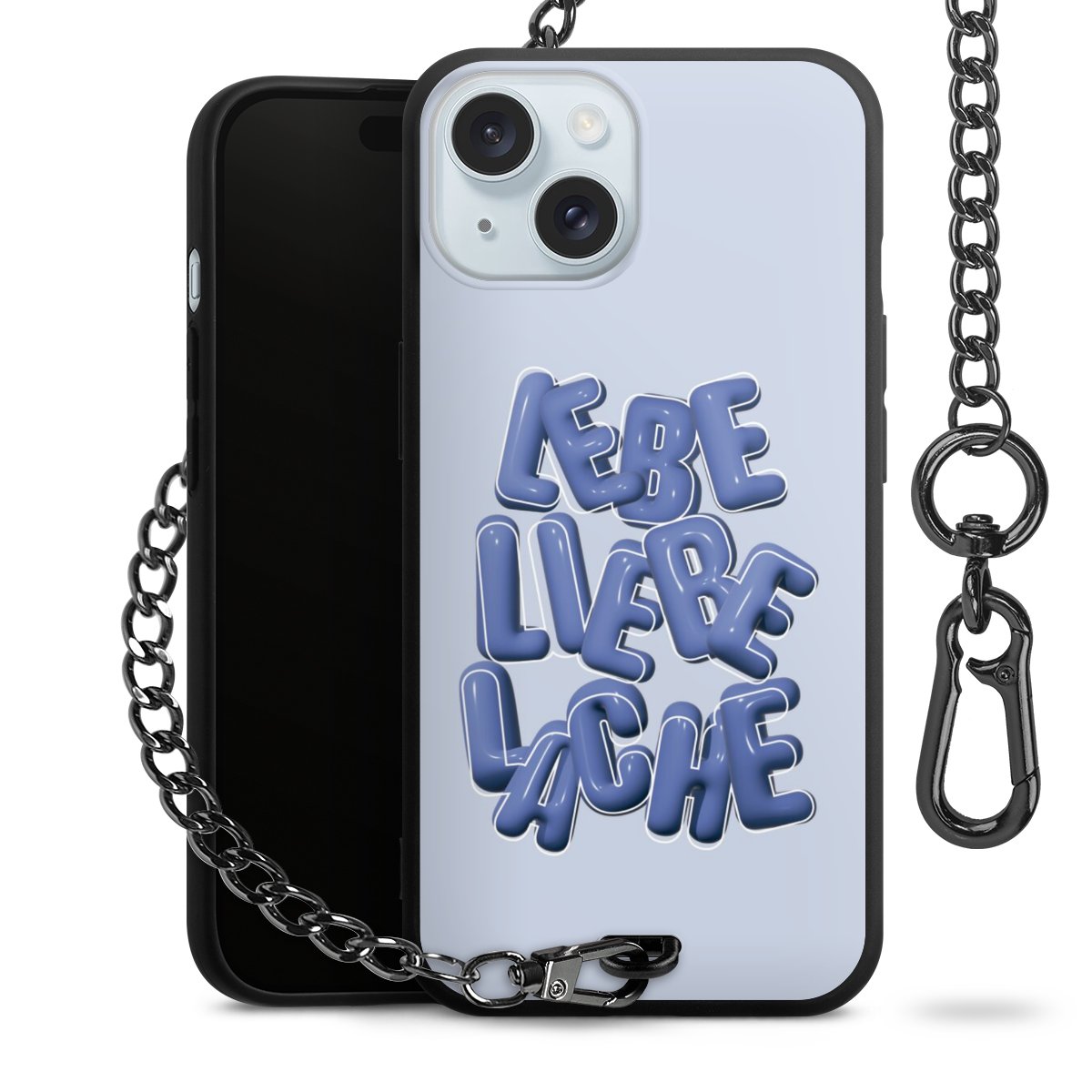 Die mattschwarze Silikon-Handyhülle besteht aus robustem TPU (thermoplastisches Polyurethan). Sie ist flexibel und schützt Dein Smartphone vor Stößen und Kratzern. Die Kette sowie der Karabinerhaken sind aus Metall in Gunmetal-Optik gefertigt. Für dieses Produkt kommen ausschließlich TÜV-geprüfte Materialien zum Einsatz.