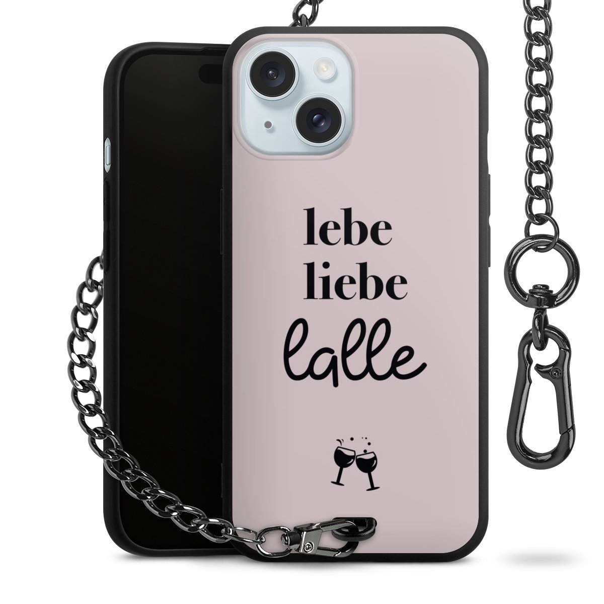 Die mattschwarze Silikon-Handyhülle besteht aus robustem TPU (thermoplastisches Polyurethan). Sie ist flexibel und schützt Dein Smartphone vor Stößen und Kratzern. Die Kette sowie der Karabinerhaken sind aus Metall in Gunmetal-Optik gefertigt. Für dieses Produkt kommen ausschließlich TÜV-geprüfte Materialien zum Einsatz.