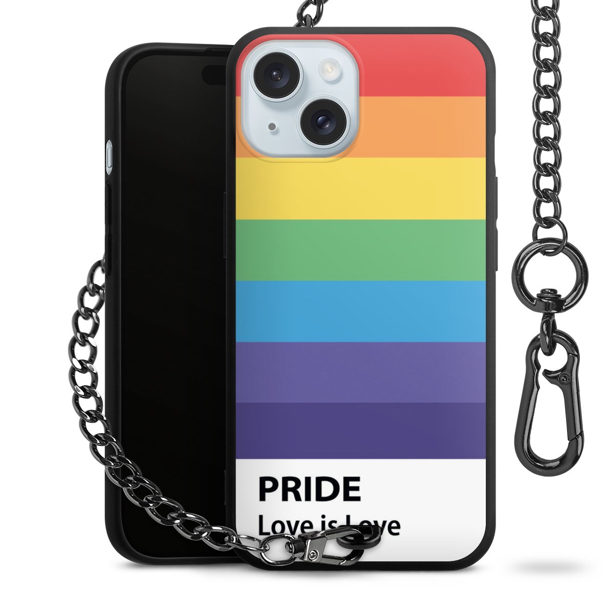 Die mattschwarze Silikon-Handyhülle besteht aus robustem TPU (thermoplastisches Polyurethan). Sie ist flexibel und schützt Dein Smartphone vor Stößen und Kratzern. Die Kette sowie der Karabinerhaken sind aus Metall in Gunmetal-Optik gefertigt. Für dieses Produkt kommen ausschließlich TÜV-geprüfte Materialien zum Einsatz.