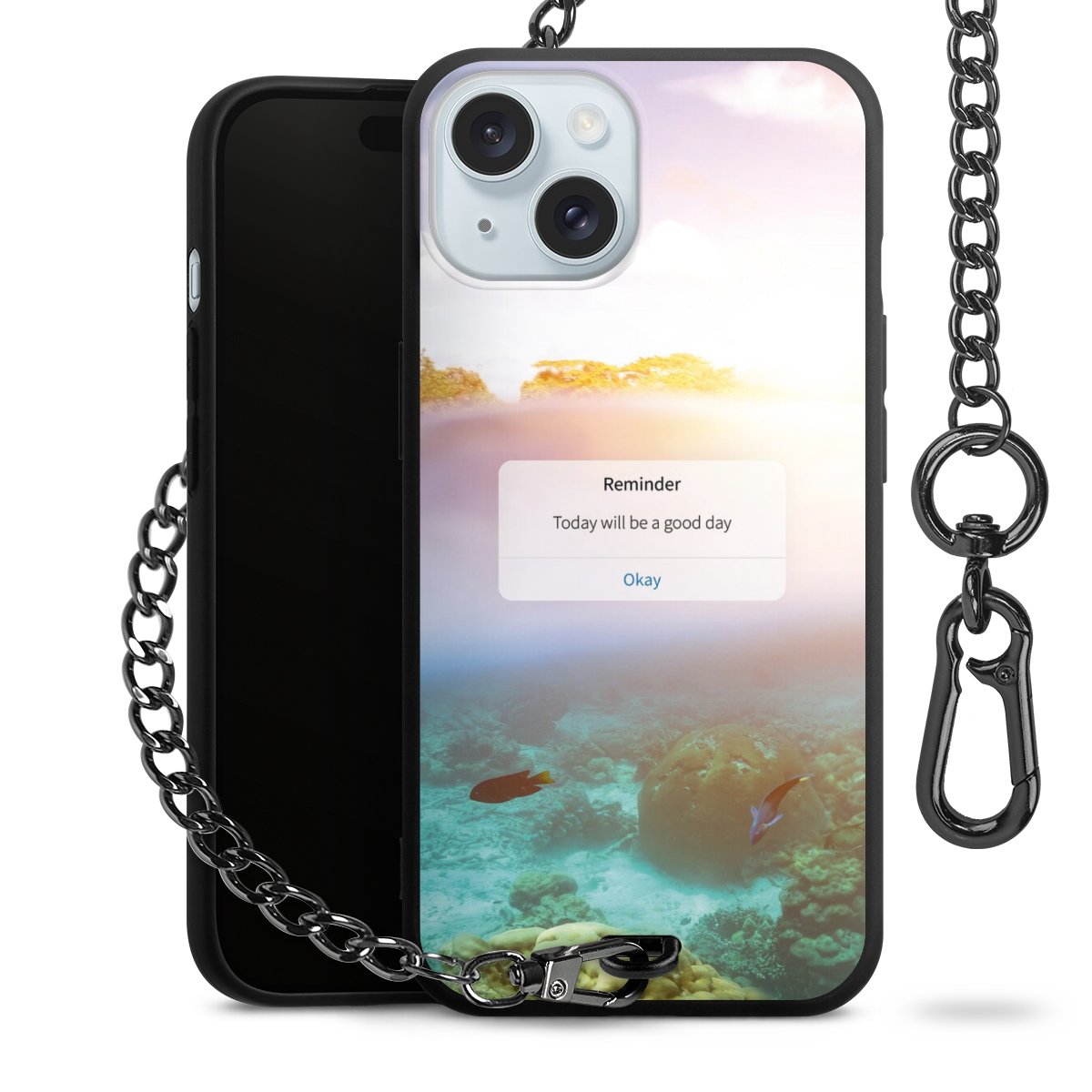 • Mattschwarze Handyhülle mit Metallkette