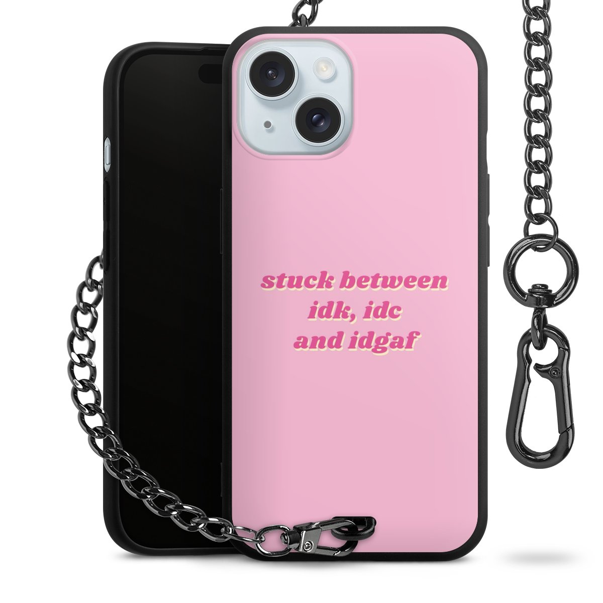 - Mattschwarze Handyhülle mit Metallkette