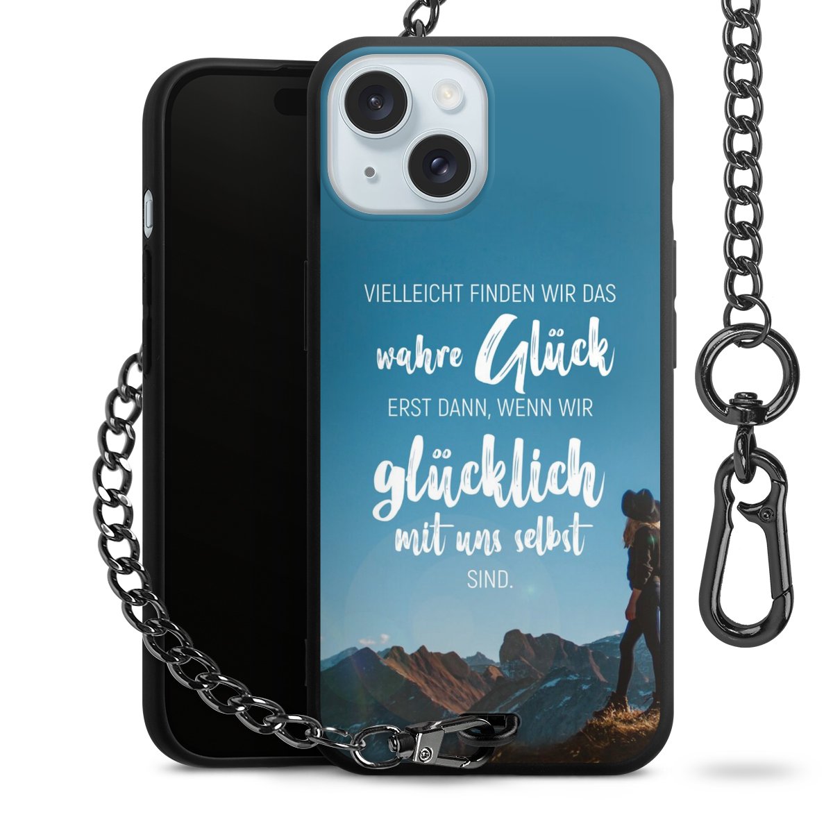 Die mattschwarze Silikon-Handyhülle besteht aus robustem TPU (thermoplastisches Polyurethan). Sie ist flexibel und schützt Dein Smartphone vor Stößen und Kratzern. Die Kette sowie der Karabinerhaken sind aus Metall in Gunmetal-Optik gefertigt. Für dieses Produkt kommen ausschließlich TÜV-geprüfte Materialien zum Einsatz.