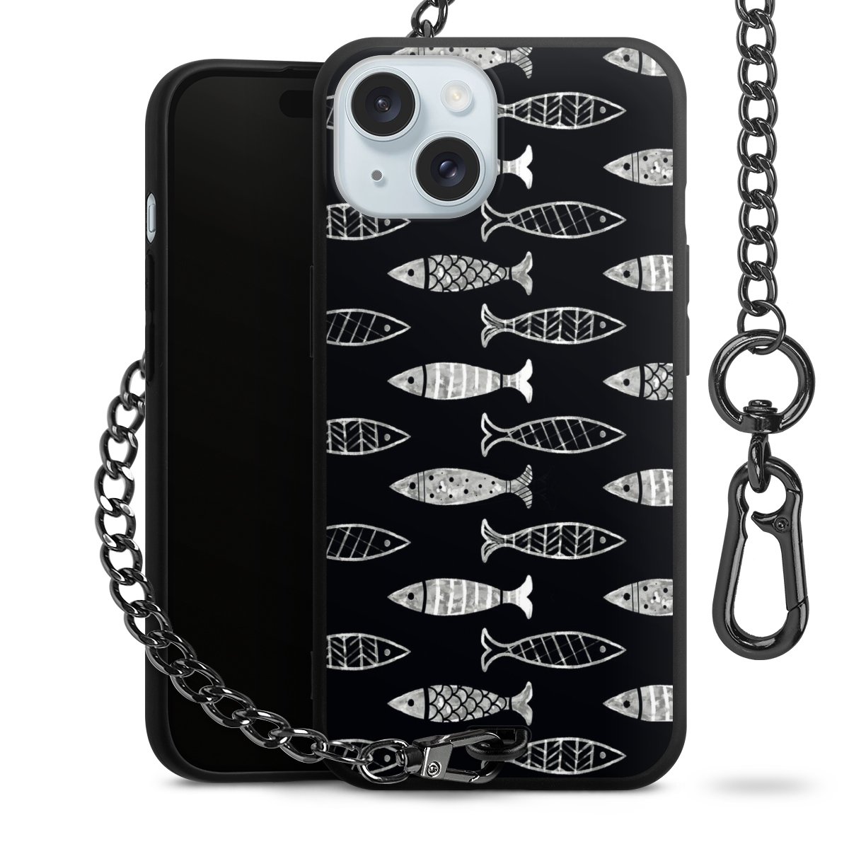 • Mattschwarze Handyhülle mit Metallkette