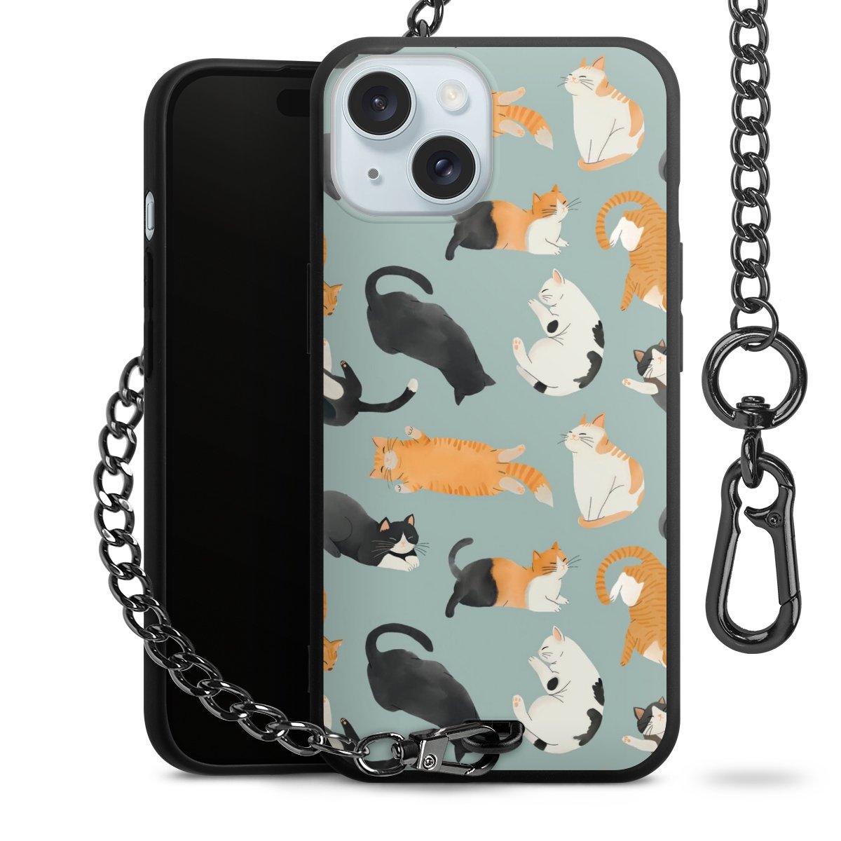 • Mattschwarze Handyhülle mit Metallkette