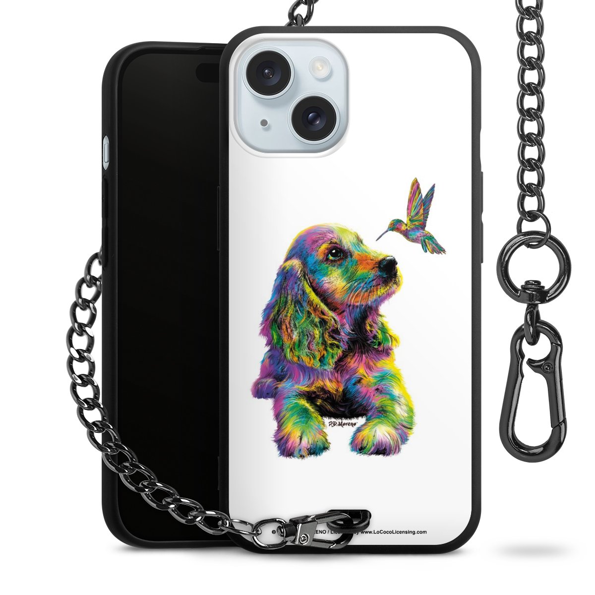 Die Handyhülle verfügt über eine mittig am unteren Rand platzierte Öse, an der die Metallkette stabil befestigt ist. Bestelle die Hülle einfach für Dein Smartphone-Modell, dann passt sie wie angegossen und Du brauchst sie bloß einmal anzudrücken. Handy in die Tasche, Karabiner an den Hosenbund – schon kann die Party starten.