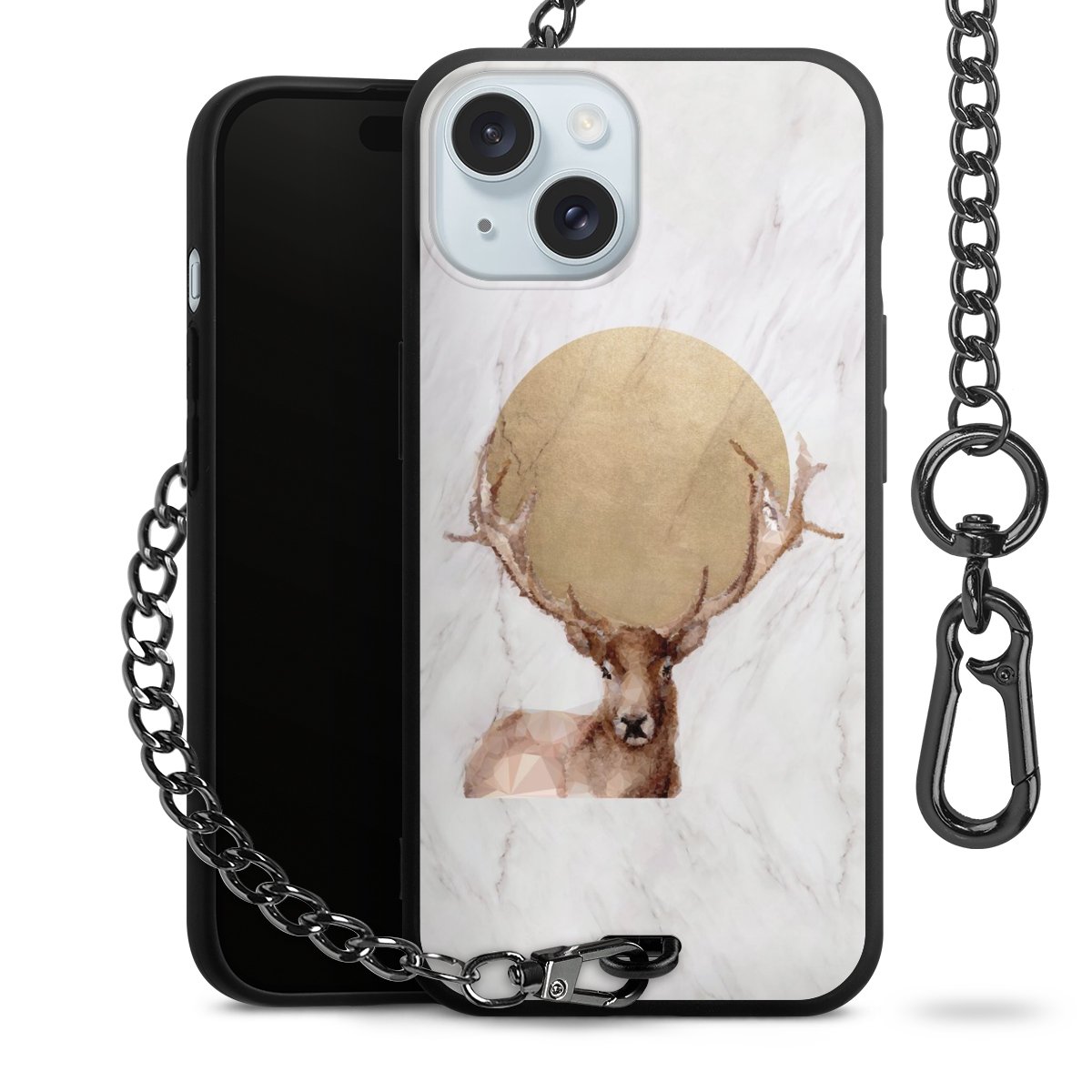 • Mattschwarze Handyhülle mit Metallkette
