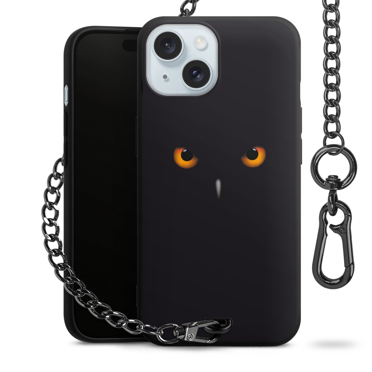 - Mattschwarze Handyhülle mit Metallkette
