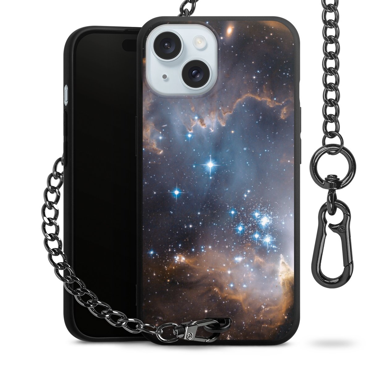 - Mattschwarze Handyhülle mit Metallkette