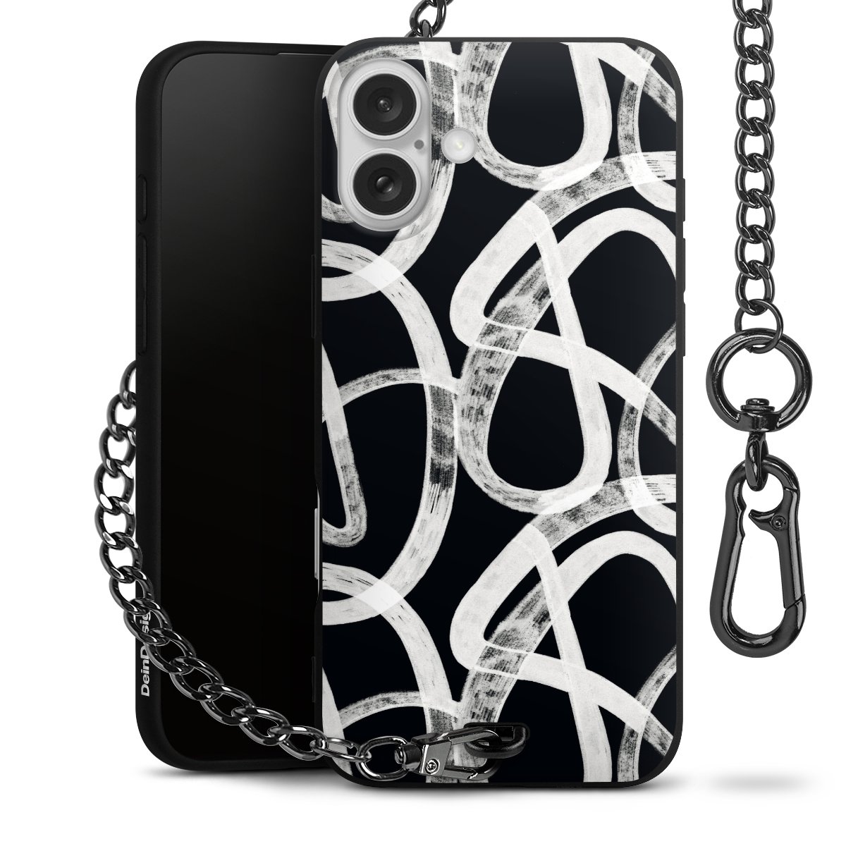 • Mattschwarze Handyhülle mit Metallkette