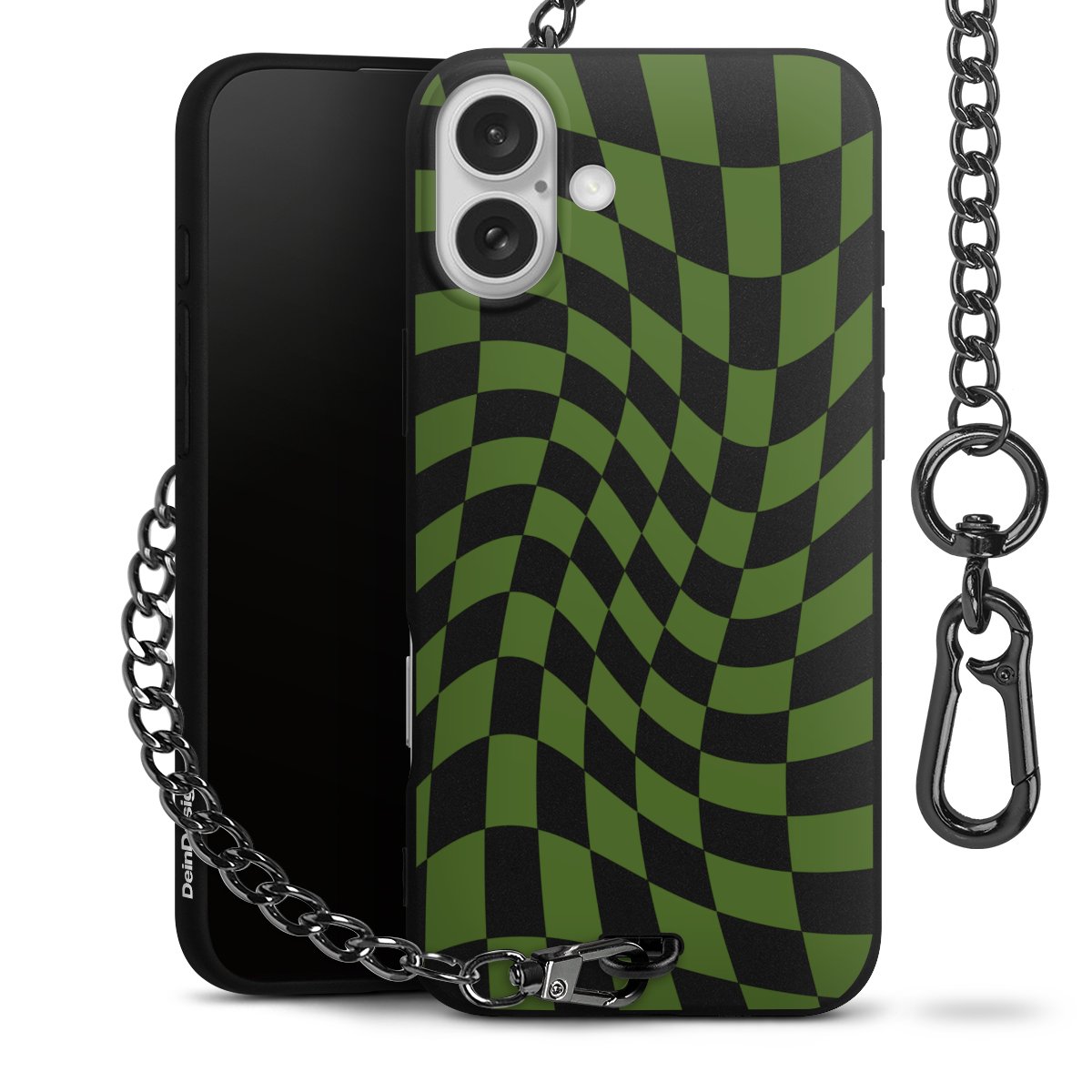 Die mattschwarze Silikon-Handyhülle besteht aus robustem TPU (thermoplastisches Polyurethan). Sie ist flexibel und schützt Dein Smartphone vor Stößen und Kratzern. Die Kette sowie der Karabinerhaken sind aus Metall in Gunmetal-Optik gefertigt. Für dieses Produkt kommen ausschließlich TÜV-geprüfte Materialien zum Einsatz.