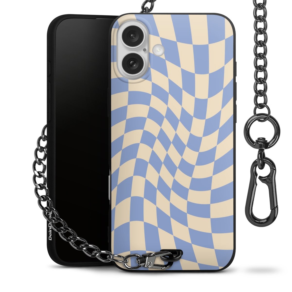 - Mattschwarze Handyhülle mit Metallkette