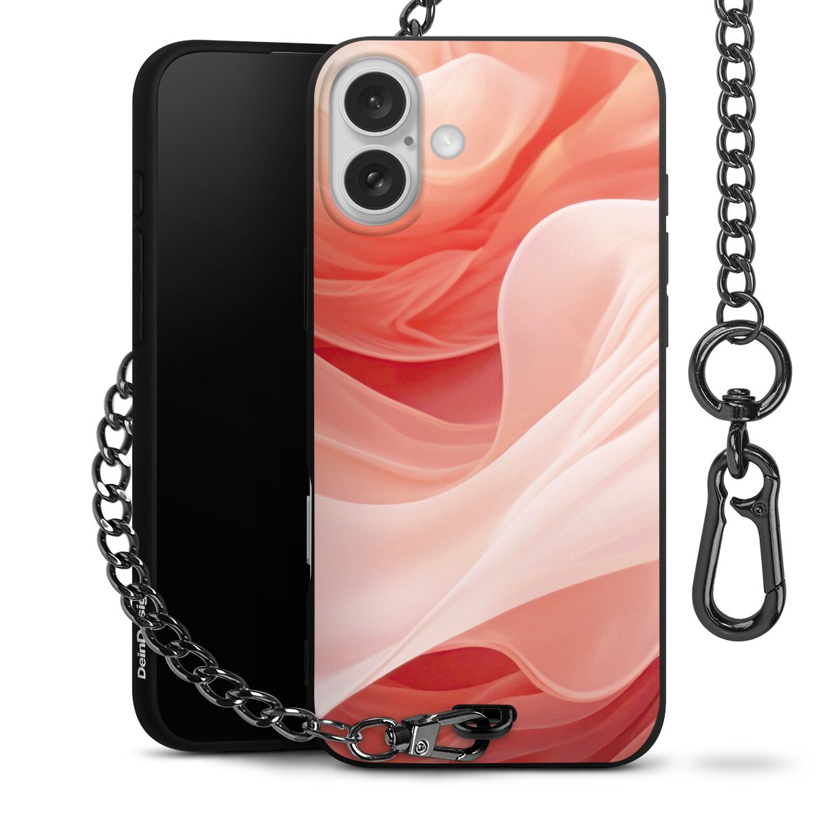 Die mattschwarze Silikon-Handyhülle besteht aus robustem TPU (thermoplastisches Polyurethan). Sie ist flexibel und schützt Dein Smartphone vor Stößen und Kratzern. Die Kette sowie der Karabinerhaken sind aus Metall in Gunmetal-Optik gefertigt. Für dieses Produkt kommen ausschließlich TÜV-geprüfte Materialien zum Einsatz.