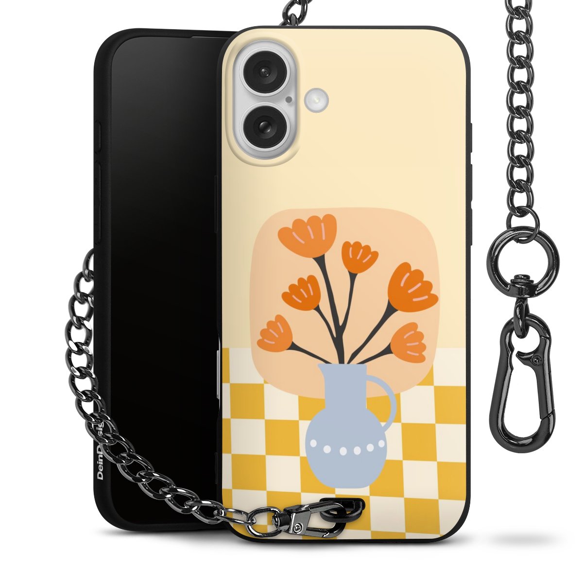 Die mattschwarze Silikon-Handyhülle besteht aus robustem TPU (thermoplastisches Polyurethan). Sie ist flexibel und schützt Dein Smartphone vor Stößen und Kratzern. Die Kette sowie der Karabinerhaken sind aus Metall in Gunmetal-Optik gefertigt. Für dieses Produkt kommen ausschließlich TÜV-geprüfte Materialien zum Einsatz.