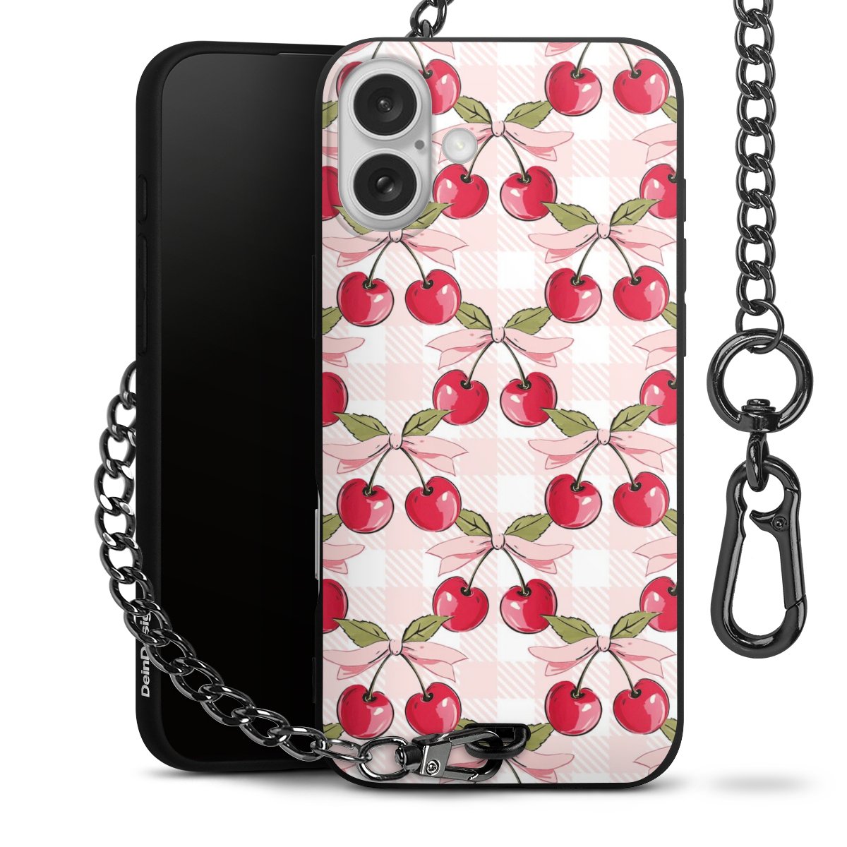 Die mattschwarze Silikon-Handyhülle besteht aus robustem TPU (thermoplastisches Polyurethan). Sie ist flexibel und schützt Dein Smartphone vor Stößen und Kratzern. Die Kette sowie der Karabinerhaken sind aus Metall in Gunmetal-Optik gefertigt. Für dieses Produkt kommen ausschließlich TÜV-geprüfte Materialien zum Einsatz.