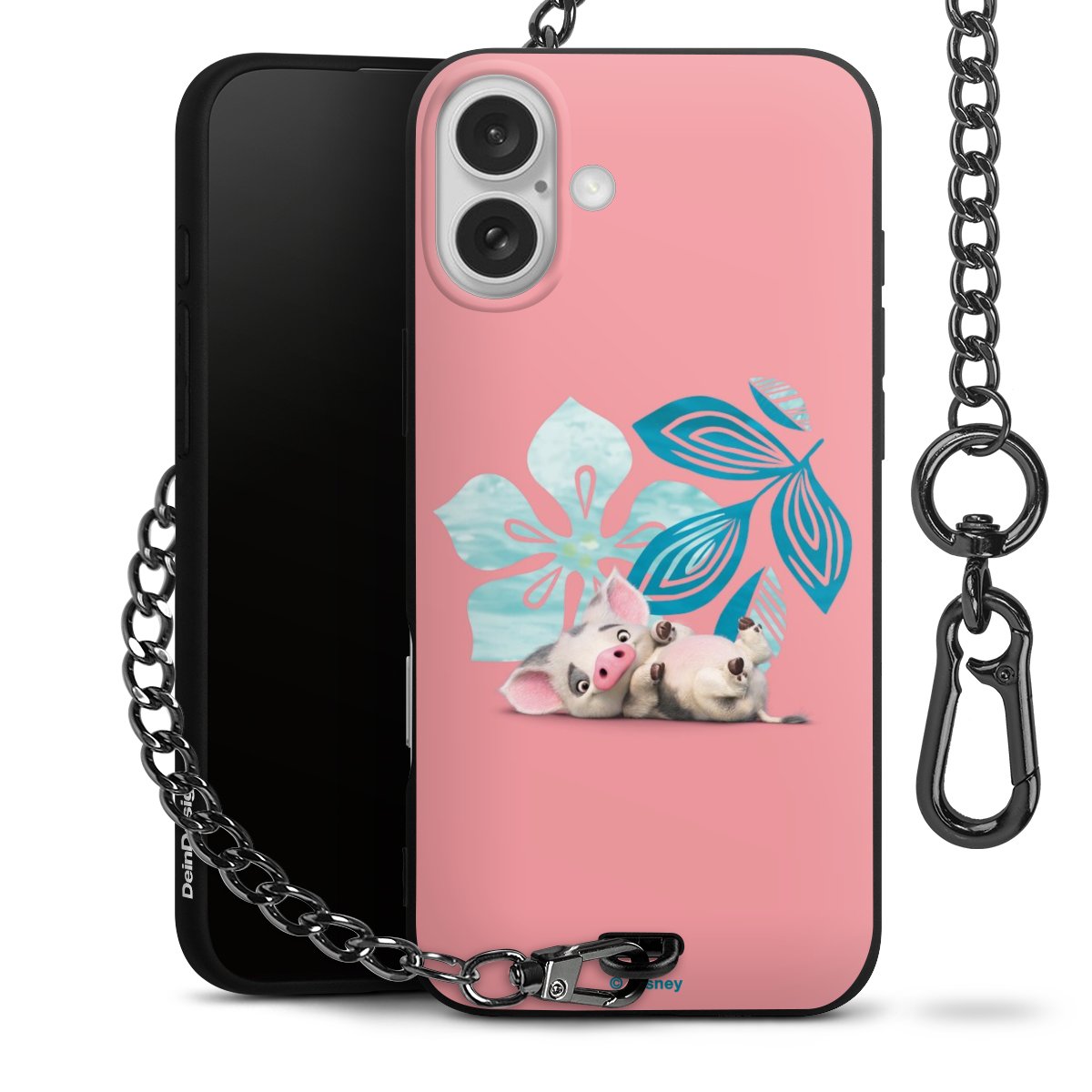 Die Handyhülle verfügt über eine mittig am unteren Rand platzierte Öse, an der die Metallkette stabil befestigt ist. Bestelle die Hülle einfach für Dein Smartphone-Modell, dann passt sie wie angegossen und Du brauchst sie bloß einmal anzudrücken. Handy in die Tasche, Karabiner an den Hosenbund – schon kann die Party starten.